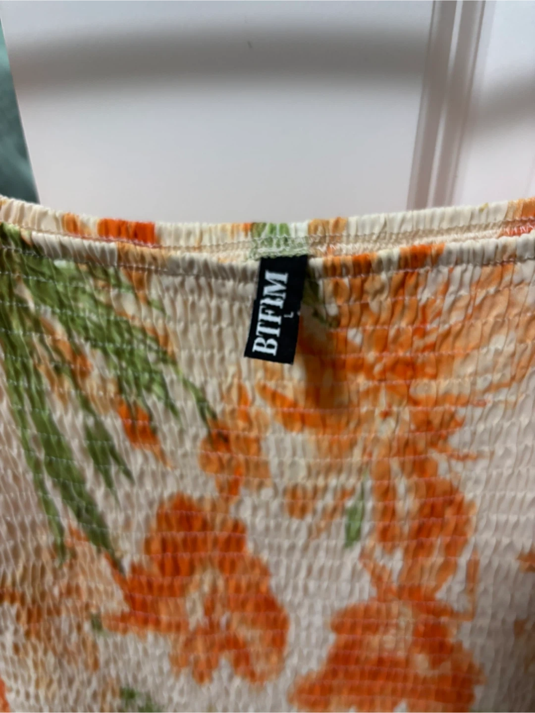 Selling a lovely BTFBM floral tiered maxi dress. It's a size large and features a beautiful orange and cream floral pattern. Perfect for a sunny day out or a special occasion