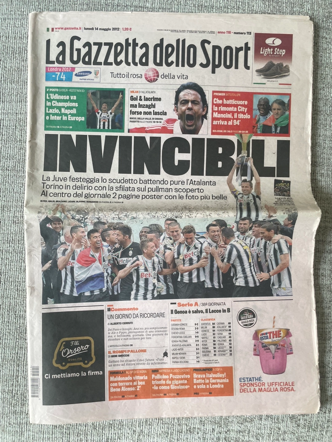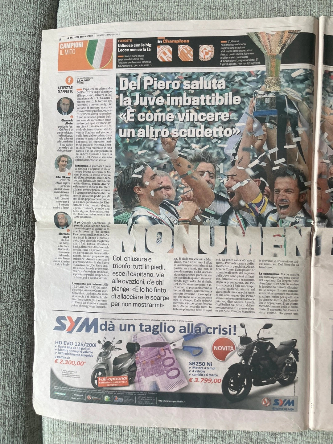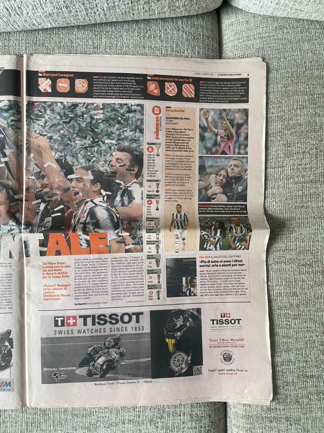 Articles about Juventus’ Scudetto, Manchester City Premier League, Alex Del Piero last game ect.
