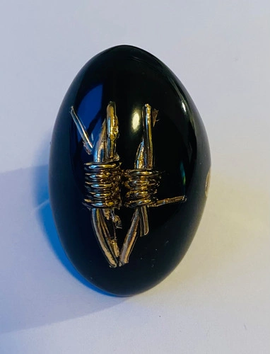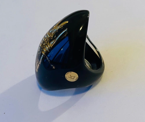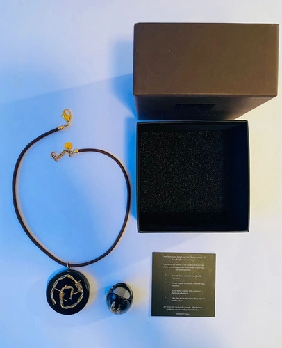 Elevate your look with this Luc Kieffer Paris Bagirio statement ring, a striking designer piece crafted from high-quality black resin and accented with elegant Swarovski crystals. This eye-catching ring blends modern artistry with French couture flair. Features: Brand: Luc Kieffer Paris Model: Bagirio Material: Black resin with Swarovski crystal accents Design: Sculptural, artistic statement silhouette Origin: Made in France Condition: New This piece is perfect as a bold fashion accent for evening wear, special occasions, or as a standout everyday accessory for lovers of unique designer jewelry. This is an authentic Luc Kieffer Paris piece handmade by French artisans. Each item is individually handcrafted using premium materials. According to the brand’s care card, all stones are genuine Swarovski crystals and the metal elements are brass plated with gold or rhodium. Please note: a matching necklace with pendant from the same brand is available separately and can be sold together with this ring.