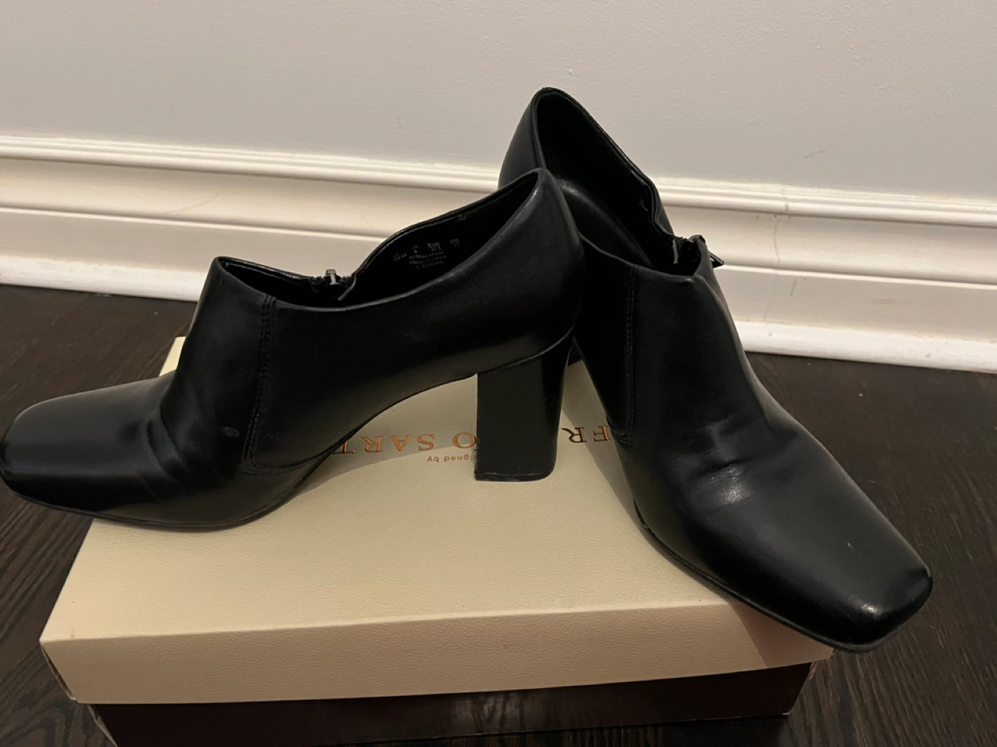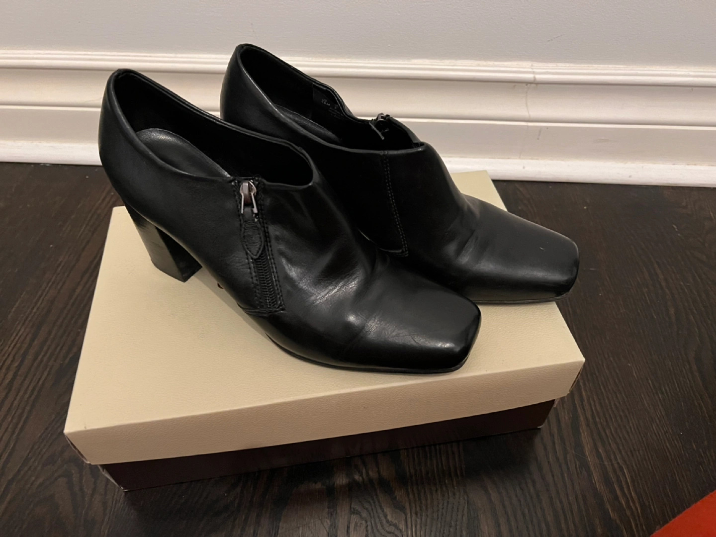 Black heels with decorative zipper on the side. With box. Good condition. Price was $70.