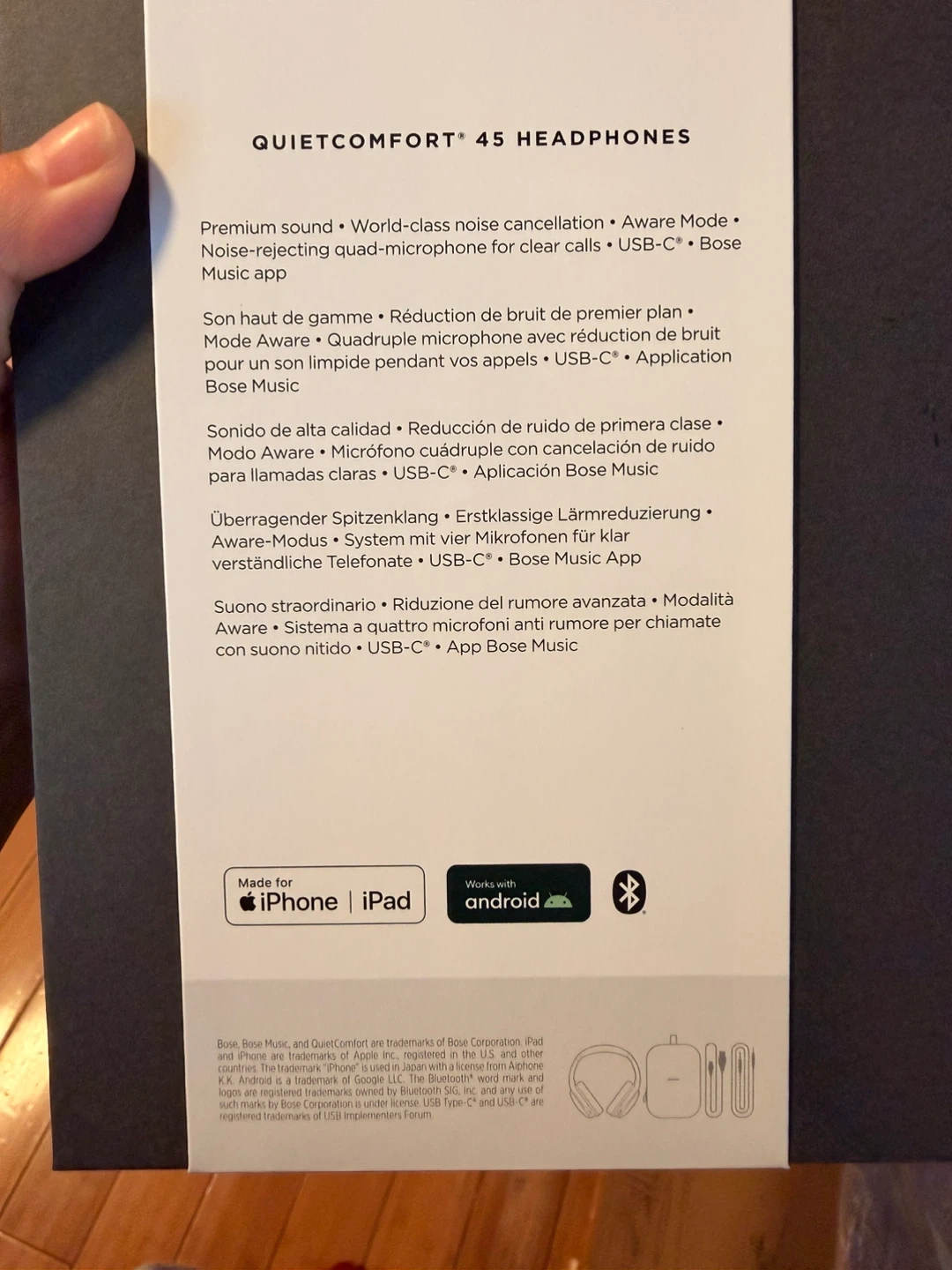 Bose QuietComfort 45 headphones with premium sound and world-class noise cancellation. It's noise-rejecting for clear calls and features USB-C charging and the Bose Music app. Works with iPhone, iPad, and Android devices.