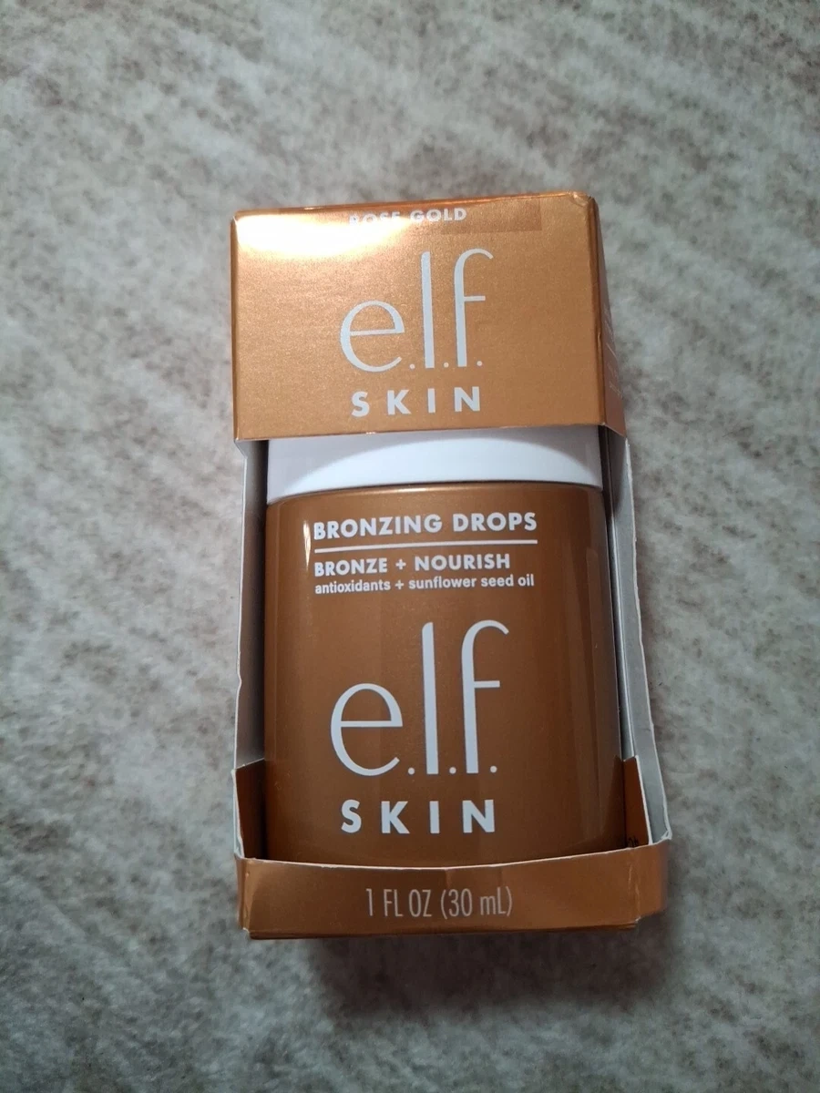 e.l.f. Skin Bronzing Drops in Rose Gold. It's bronze + nourish formula with antioxidants and sunflower seed oil. 1 fl oz (30 mL) bottle.