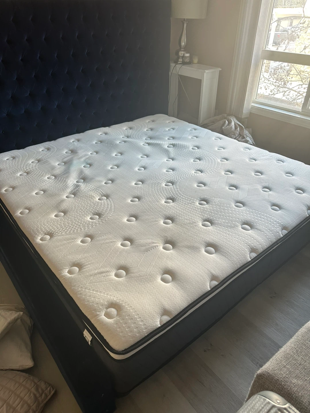 Moving and need to sell this stunning king size mattress and bed frame in royal blue velvet velour! π