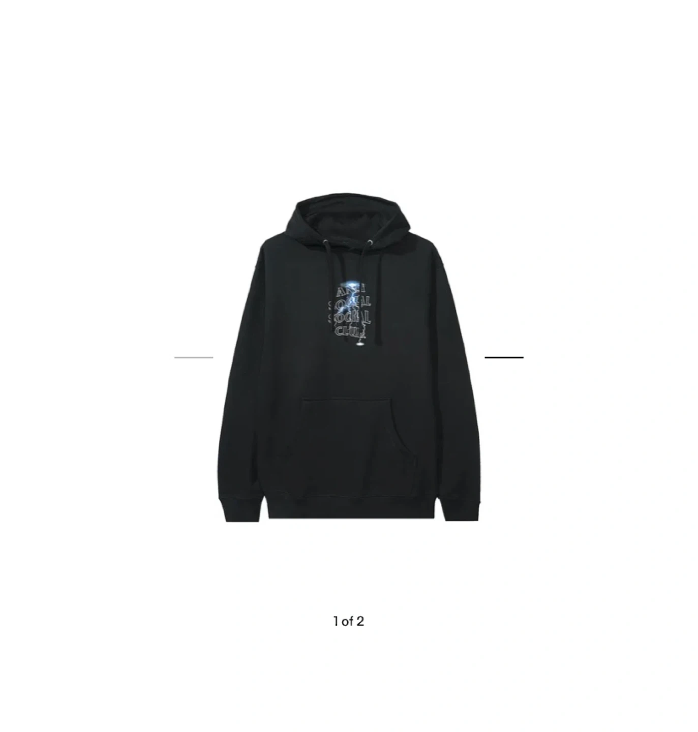 Black pullover hoodie from Anti Social Social Club. Features a lightning graphic and logo print on the back. It's made from a comfortable cotton blend. This hoodie is great for casual wear.