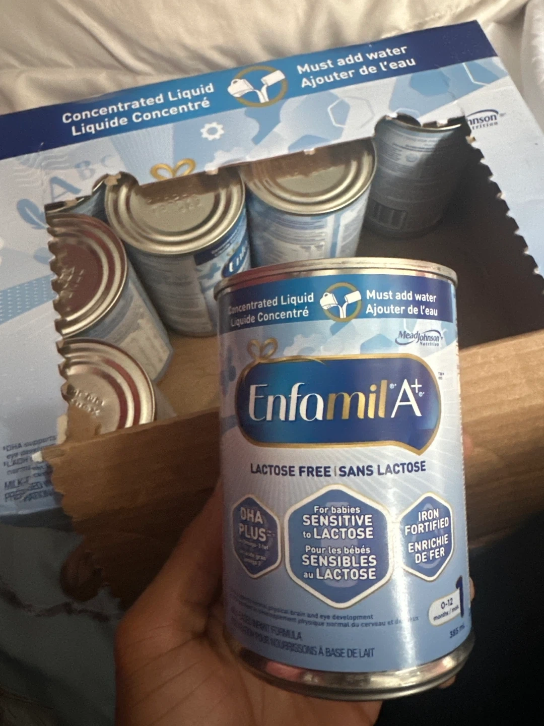 Selling a box of Enfamil A+ Lactose Free formula. Perfect for sensitive little ones! Each can is concentrated liquid. Please note the expiration date.only has 7 can