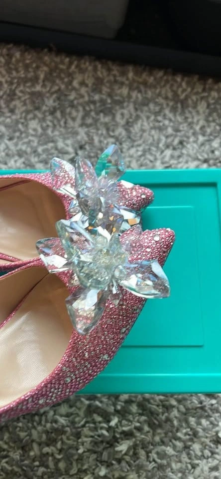 US size 7/7.5. EU size 38. Brand new crystal heel shoes, only tried on once for less than 20 minutes. They are too small for me, which is why I'm selling. Comes with its own fabric shoe bag and a plastic box for storage. Heel height is around 5cm.
