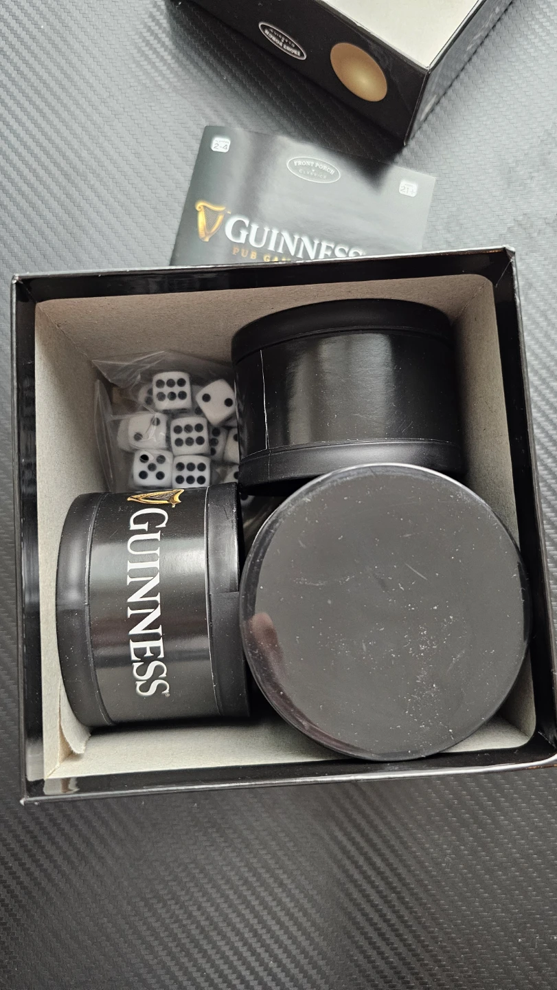 This Guinness Pub Game Series set includes Liar's Dice. It's designed for 2-4 players and comes with dice cups and dice. Perfect for game nights with friends!