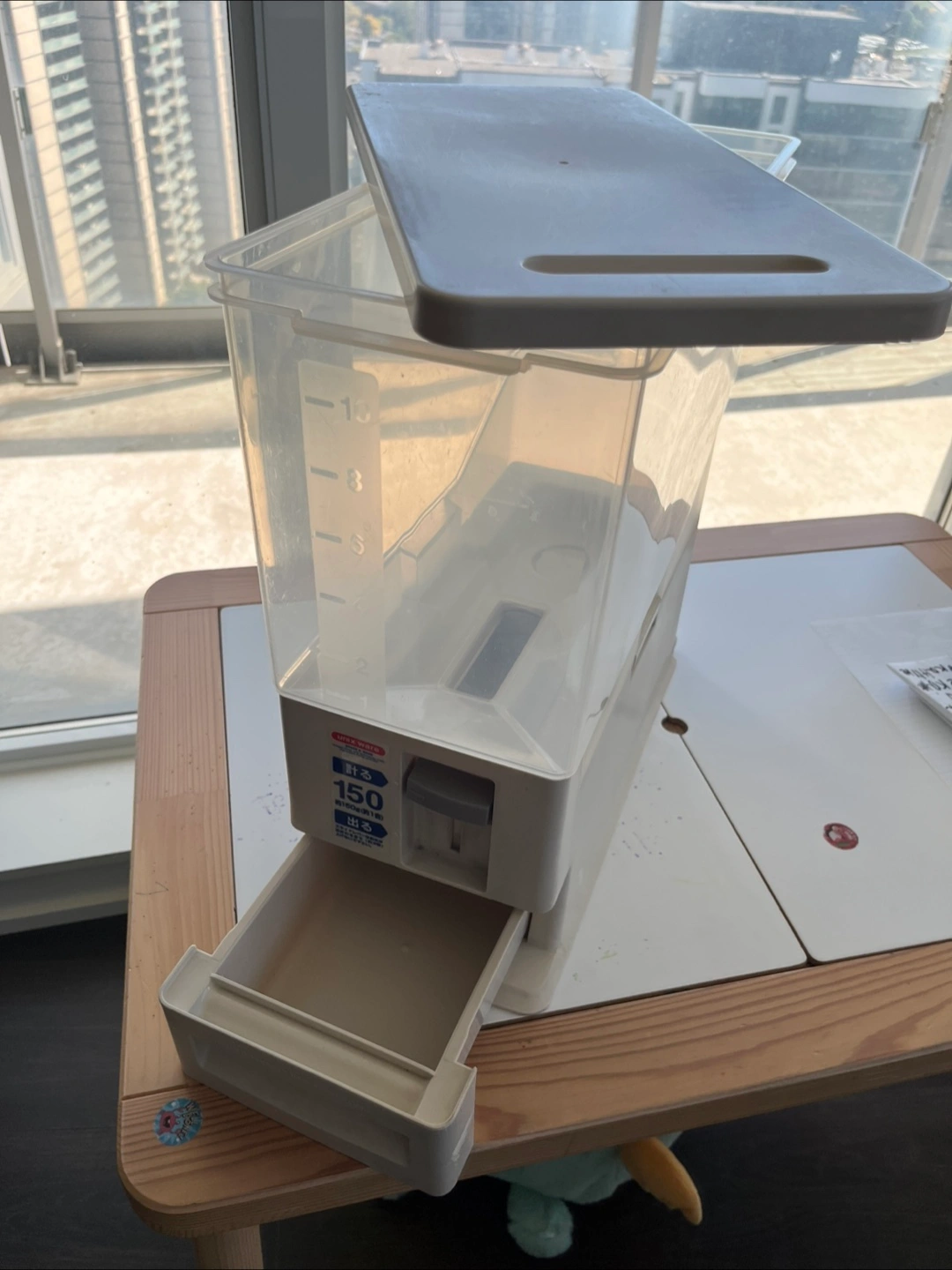 Selling a rice dispenser in great condition! It's perfect for keeping your rice fresh and dispensing just the right amount. It measures rice in 150g increments. It's a handy addition to any kitchen