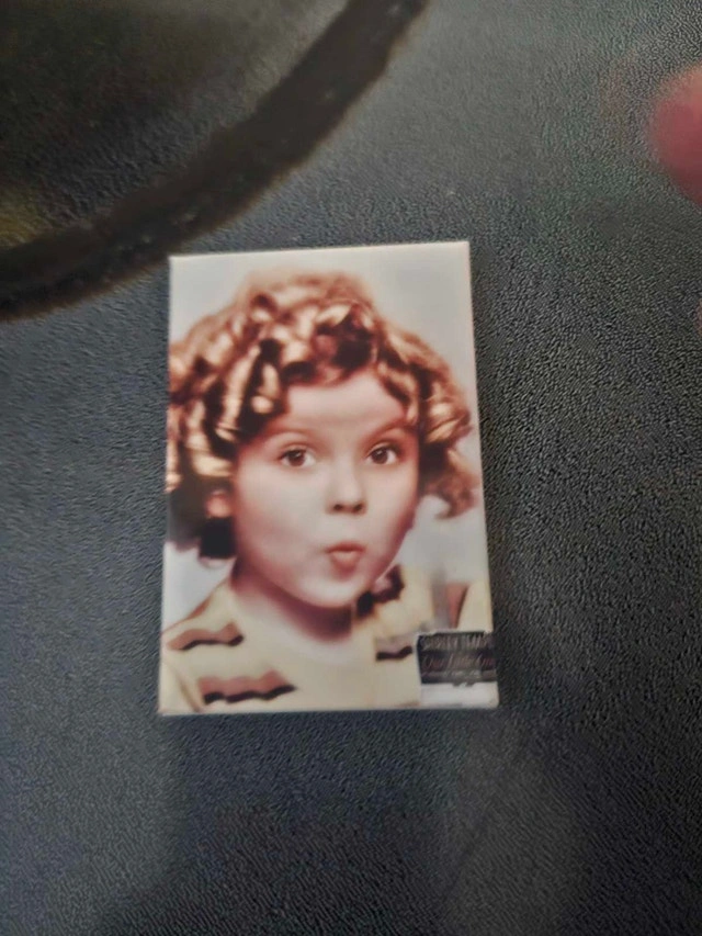 This Shirley Temple magnet is a nostalgic piece featuring the iconic child star, perfect for collectors of vintage memorabilia. The magnet is used, so it has some wear on the back. This magnet would love to find its forever home!
