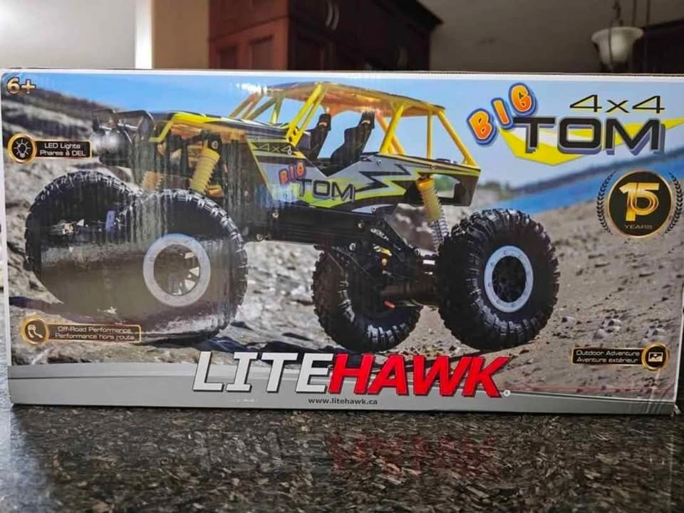 Selling a brand new LiteHawk Big Tom 4x4 RC truck! It's never been used and still in its original box. Great for off-road adventures with LED lights. Get ready for some fun!
