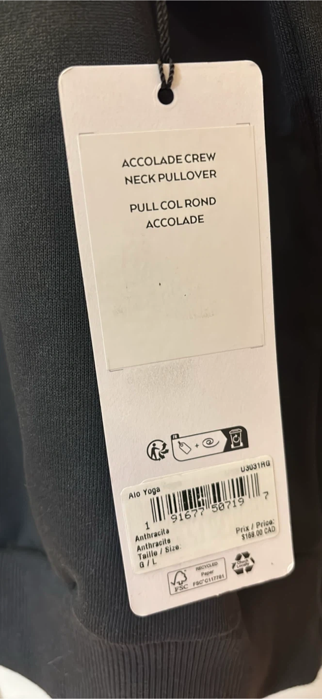 Alo Yoga Accolade Crew Neck Pullover - Black, Size L