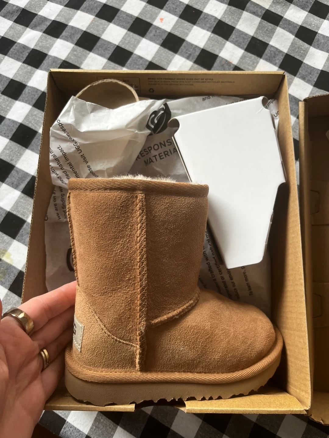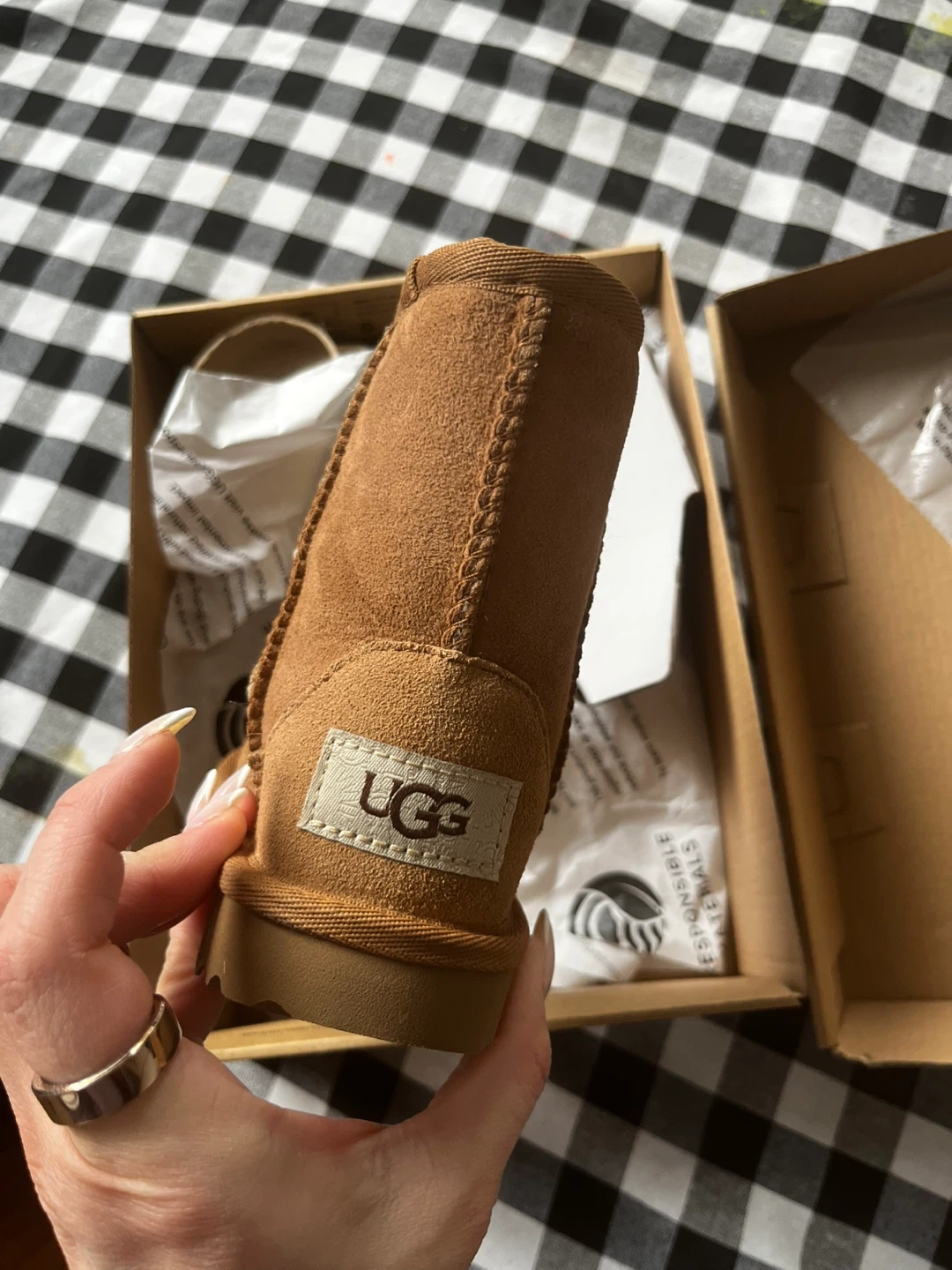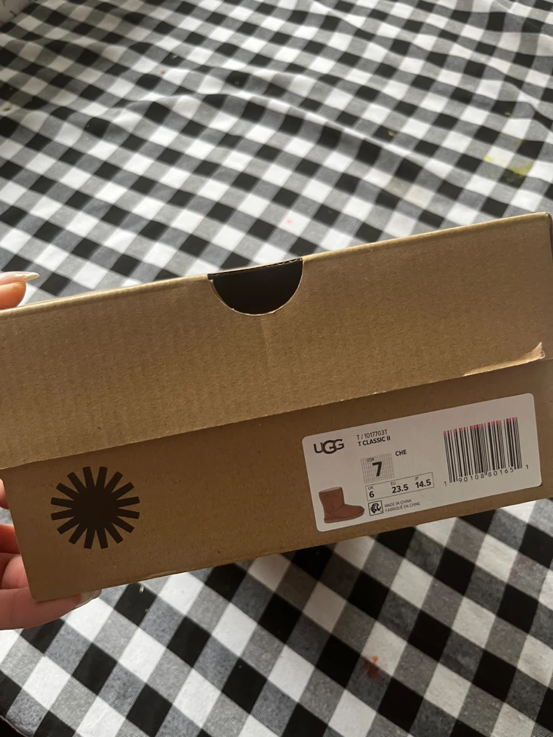 Selling a pair of brand new UGG Classic II boots in chestnut! They are a size 7 and come with the original box. Perfect for keeping your feet warm and cozy this winter