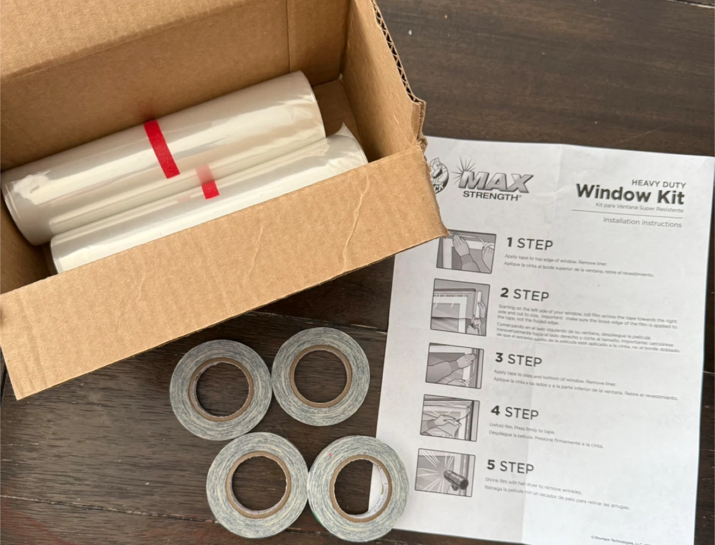 This is a Max Strength Heavy Duty Window Kit. It includes window film and sealing tape. Use this kit to create an insulated barrier against drafts and heat loss in your home.