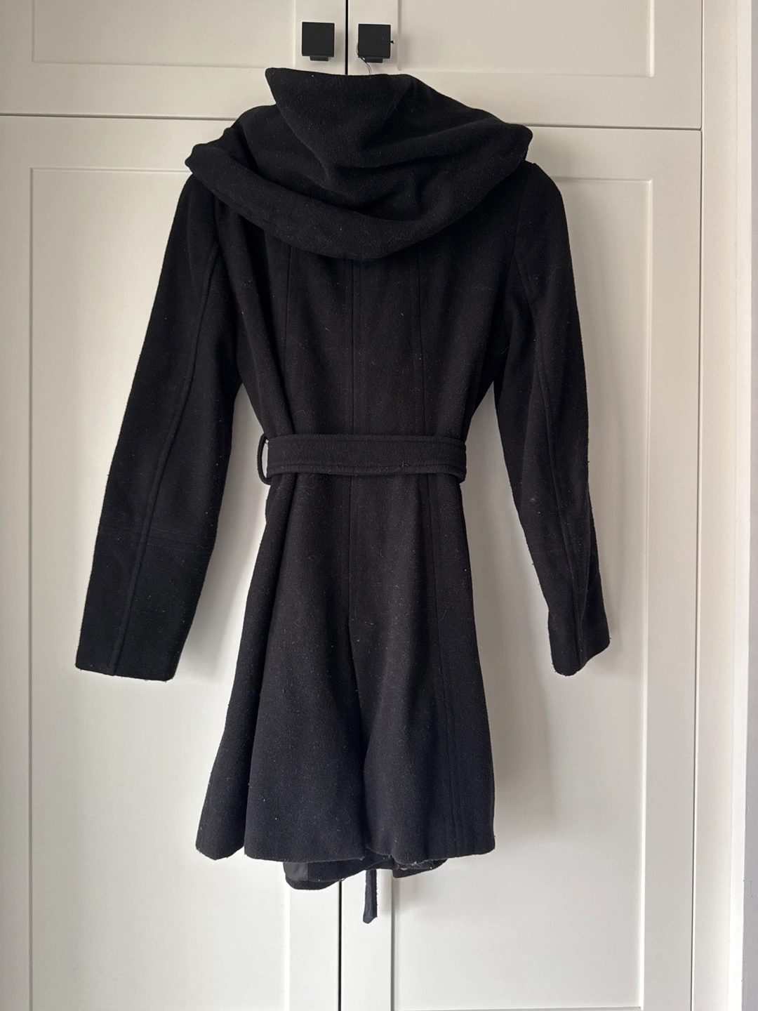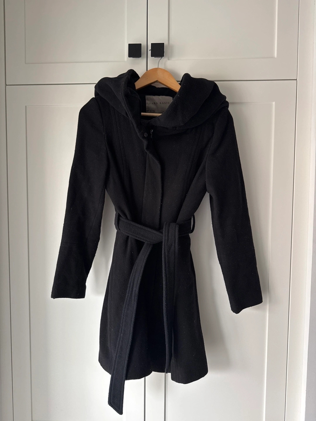 #ThriftyPicks Zara Basic Black Hooded Wool Coat