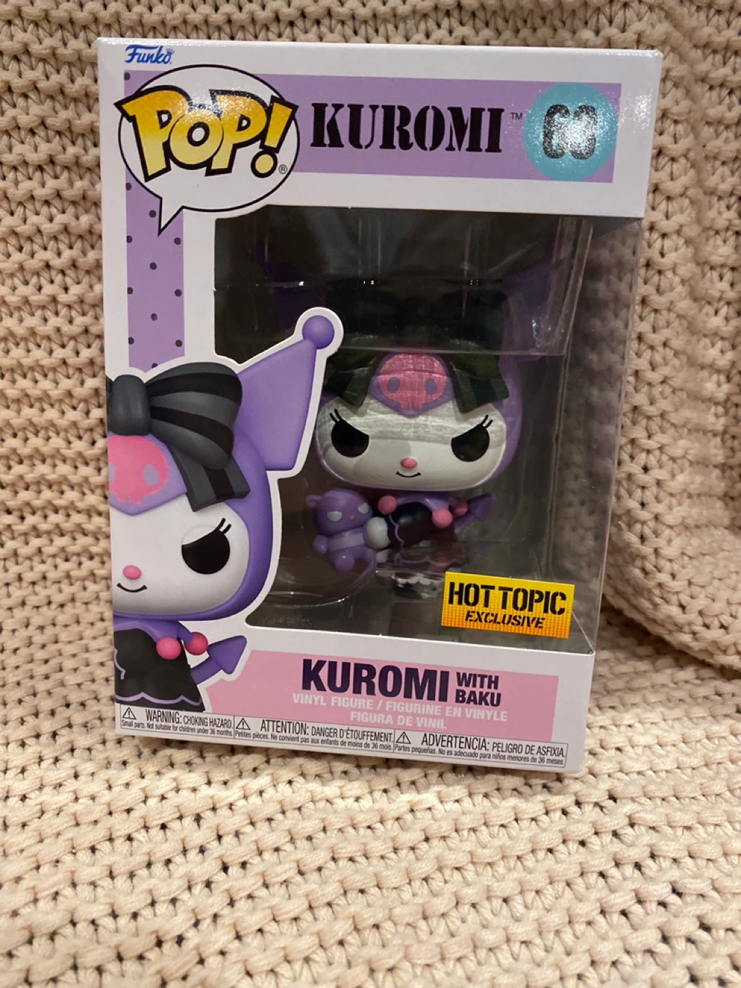 This is a Funko Pop! Kuromi with Baku vinyl figure. It's a Hot Topic exclusive collectible. Comes in original packaging.