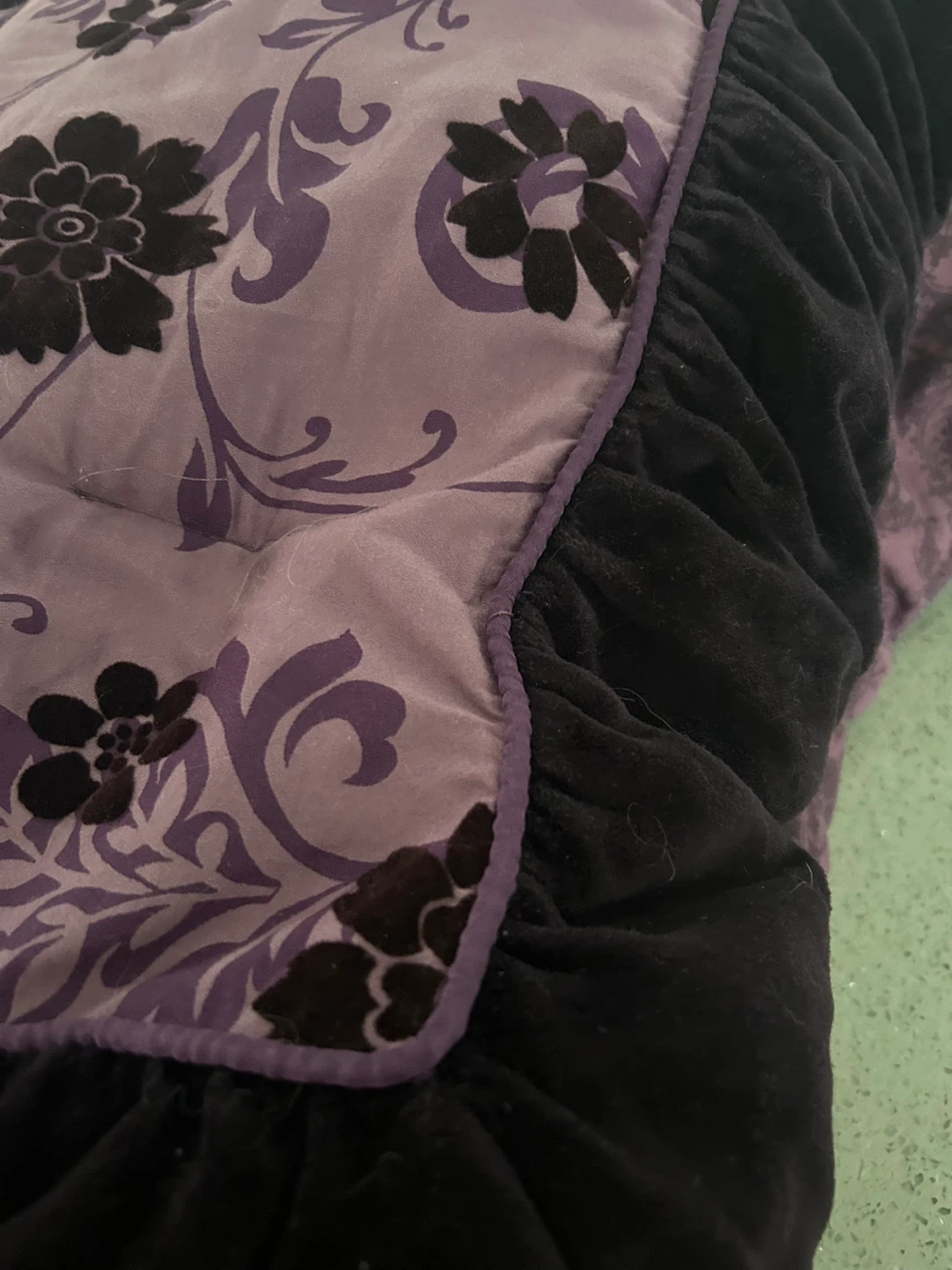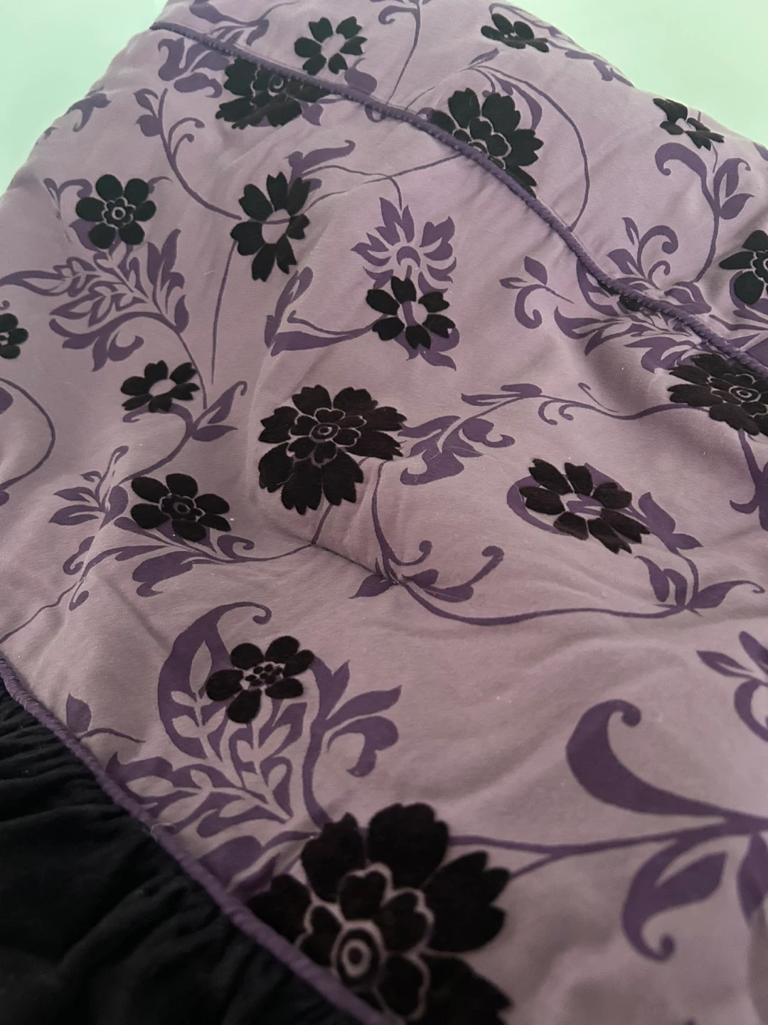 I’m not sure about the fabric content as the tag is cut off but it feels soft like a cotton blend.