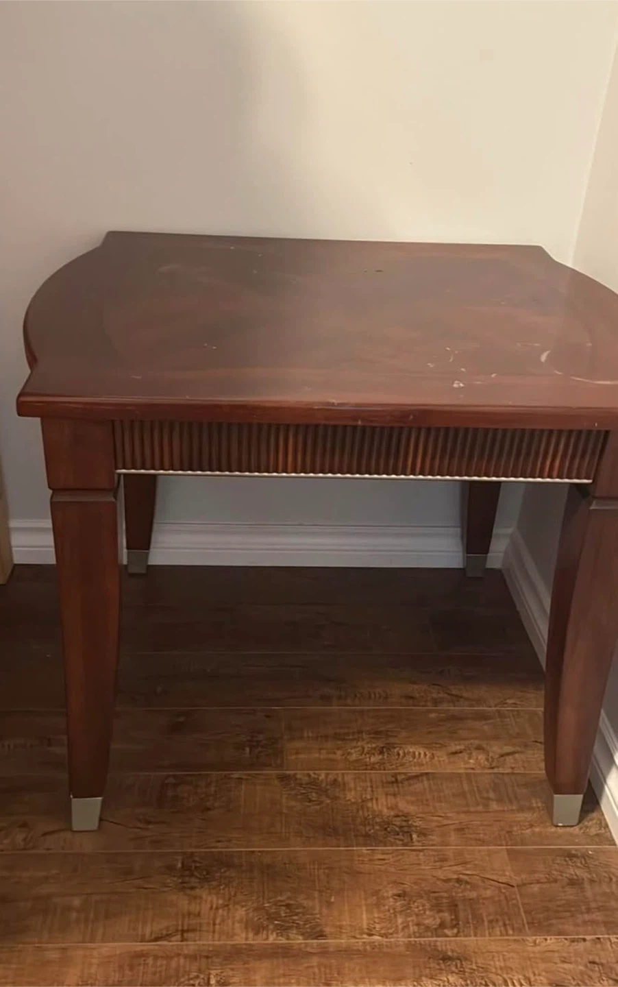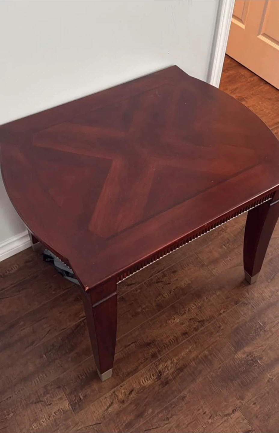 Buy & SellDark Wood Accent TableDark Wood Accent Table$82 stylish dark wood accent tables brown/wood finish and decorative inlay on the tabletop…Accented with metallic caps on the legs.WHERE TO MEETNear Erma Stephenson elementary schoolView MapSELLERHinaPacific Academy100 reviews2 chats·0 favorites·19 viewsSEND CHAT TO SELLERHi Hina! I’m interested in your listing.Hi Hina! I’m interested in your listing.Get the Karrot app to chatSign In to chat