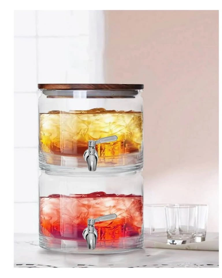 New Two-Tier Glass Beverage Dispenser with Wood Lid