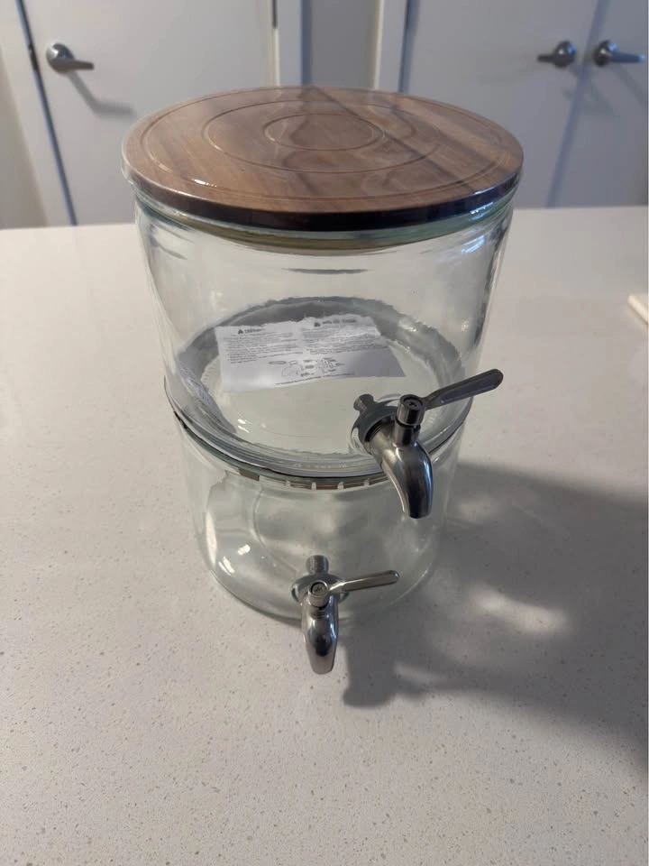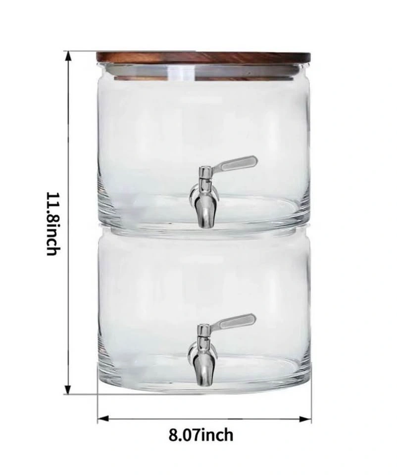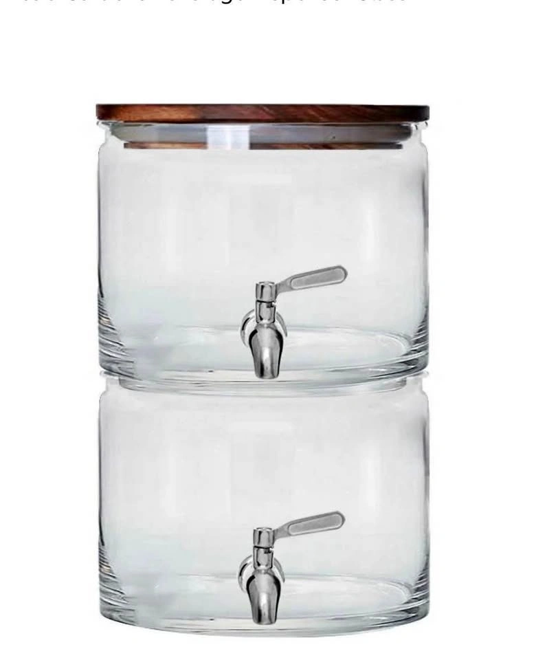 New Two-Tier Glass Beverage Dispenser with Wood Lid