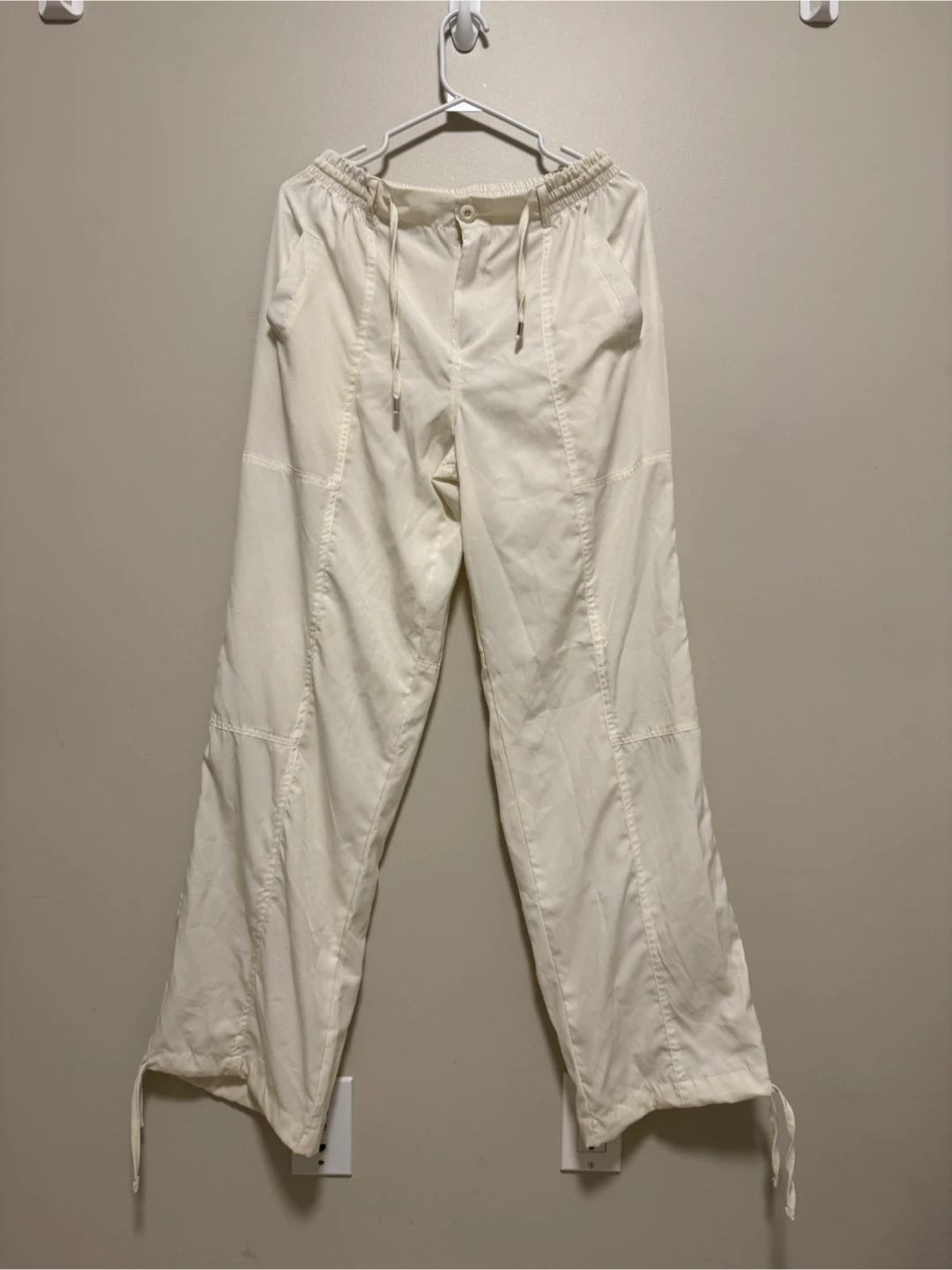 Selling a pair of off-white drawstring pants. They're in great condition and would be a stylish addition to any wardrobe!