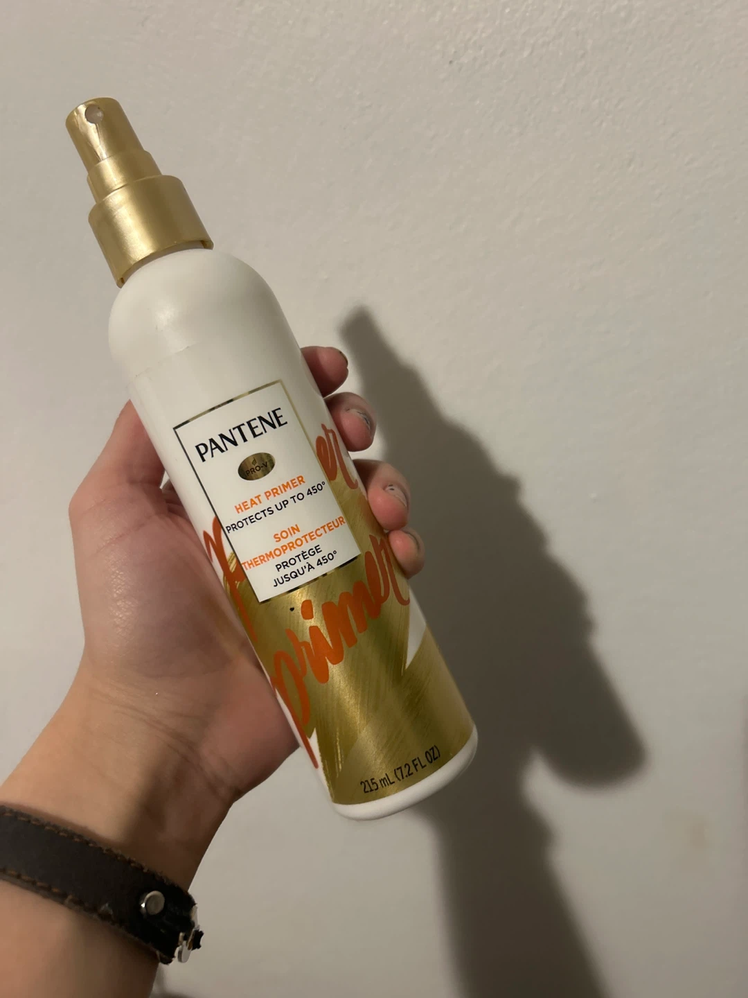 Pantene Pro-V Heat Primer. Protects hair up to 450°F. This is a 215 mL (7.2 FL OZ) bottle.