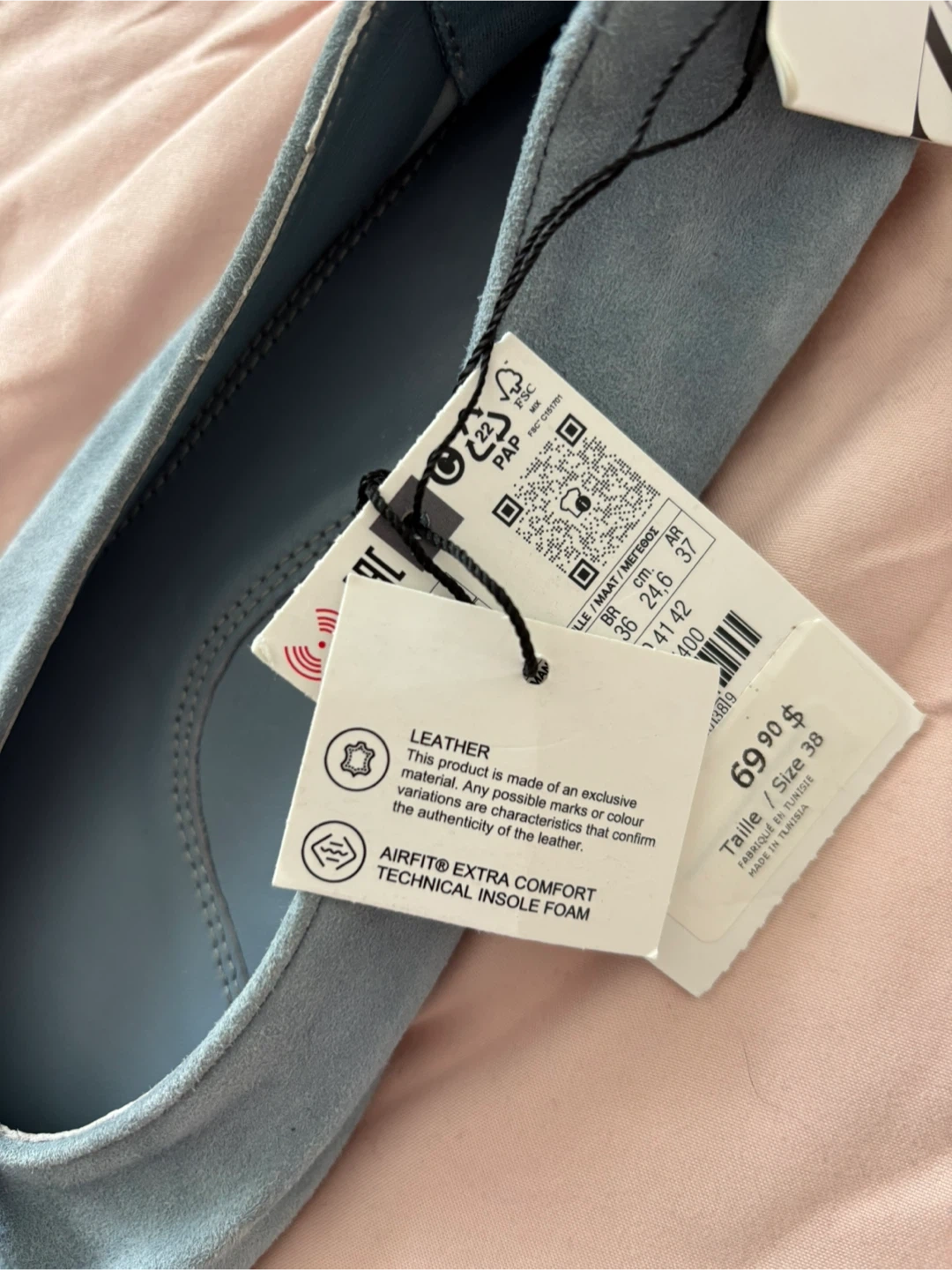 ZARA ballet flats in a lovely blue suede. These shoes are made with leather and feature AIRFIT EXTRA COMFORT technical insole. Perfect for everyday wear. Size 38.