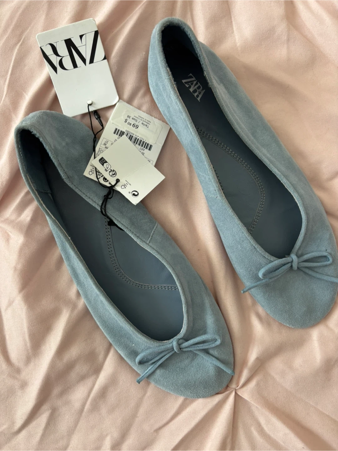 ZARA Blue Suede Ballet Flats Size 38