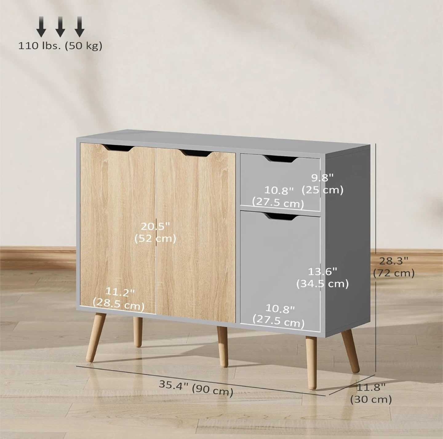 Measures 35.4" wide, 28.3" high, and 11.8" deep.