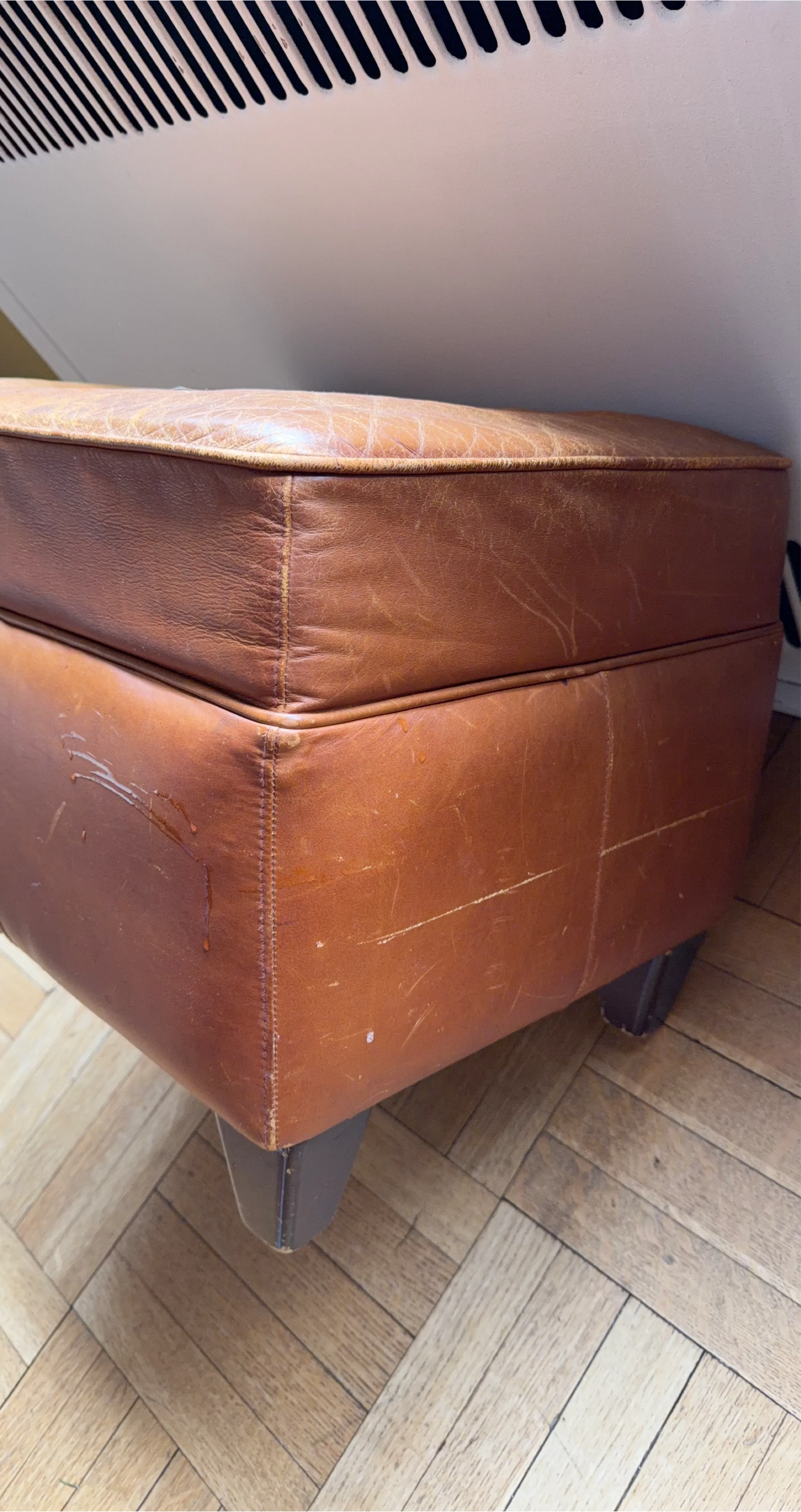 Buy & SellBrown Leather Ottoman FootstoolBrown Leather Ottoman Footstool$45This ottoman is upholstered in brown leather. It's square-shaped with stitched details on the top cushion. Dark wooden feet provide support.ConditionGoodWHERE TO MEETCheck LocationView MapSELLERverifiedTinaMidtown Manhattan873 reviews0 chats·0 favorites·33 viewsSEND CHAT TO SELLERHi Tina! I’m interested in your listing.Hi Tina! I’m interested in your listing.Get the Karrot app to chatSign In to chat