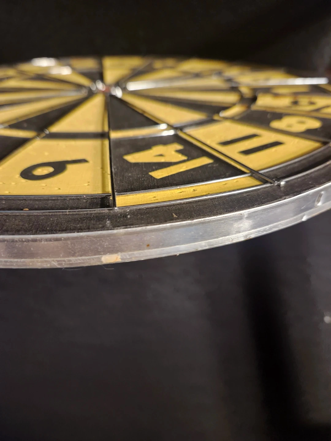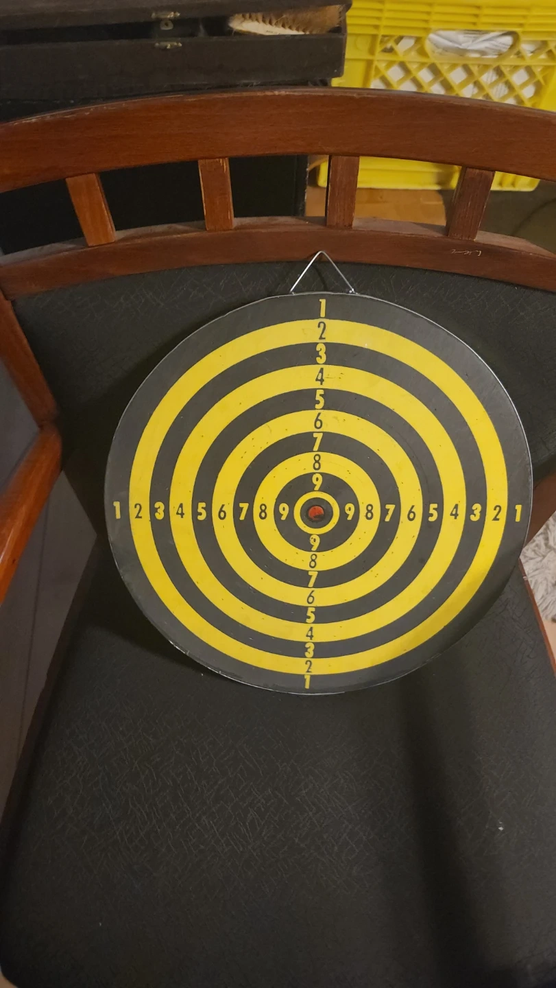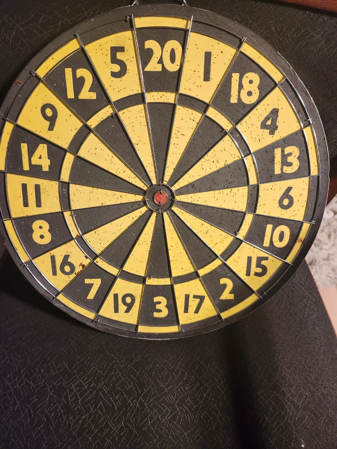 This is a standard dartboard with numbers 1-20. It's great for casual games at home. The board is circular and features yellow and black segments.