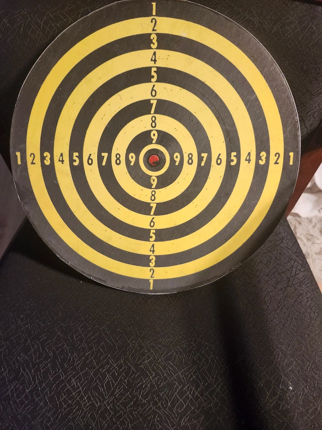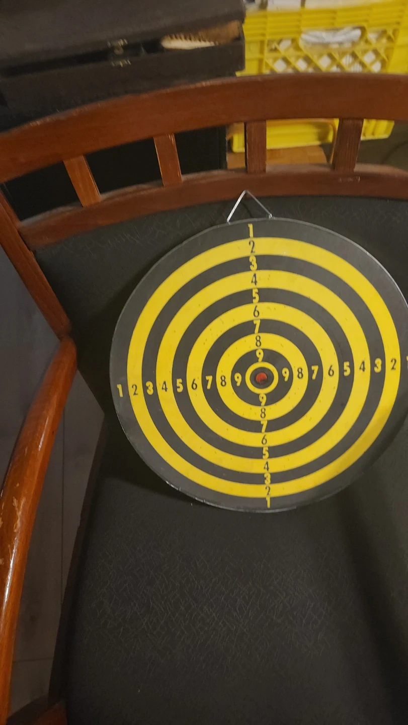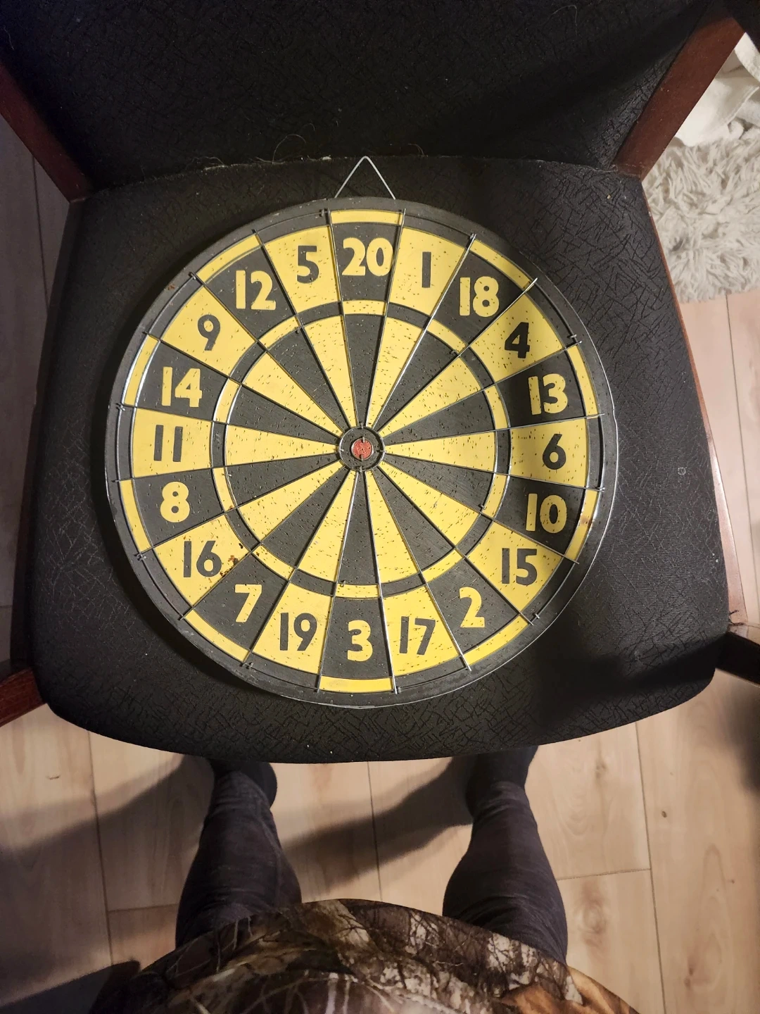 This is a standard dartboard with numbers 1-20. It's great for casual games at home. The board is circular and features yellow and black segments.