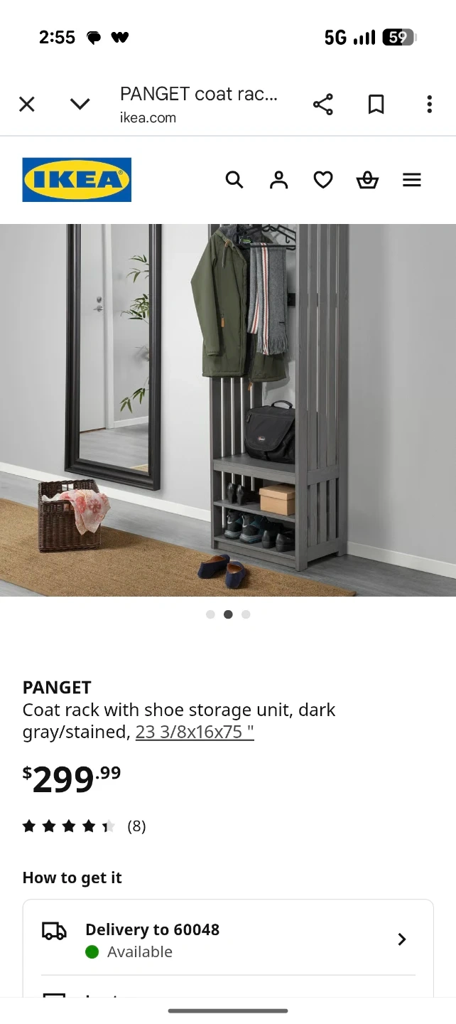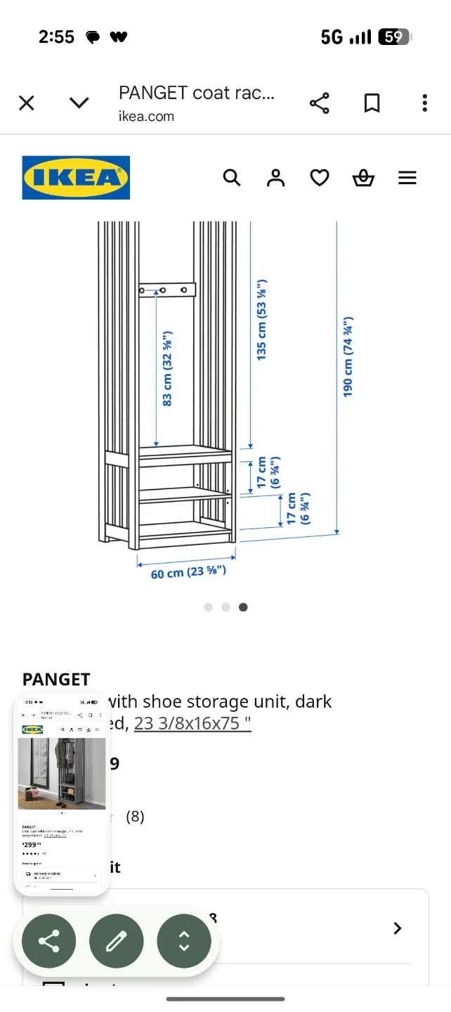 Selling an IKEA PANGET coat rack with shoe storage unit in dark gray/stained. Dimensions are 23 3/8x16x75 ". Great for organizing your entryway or bedroom!