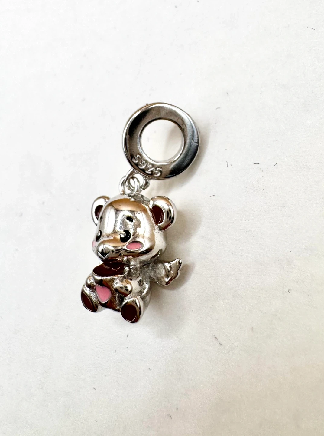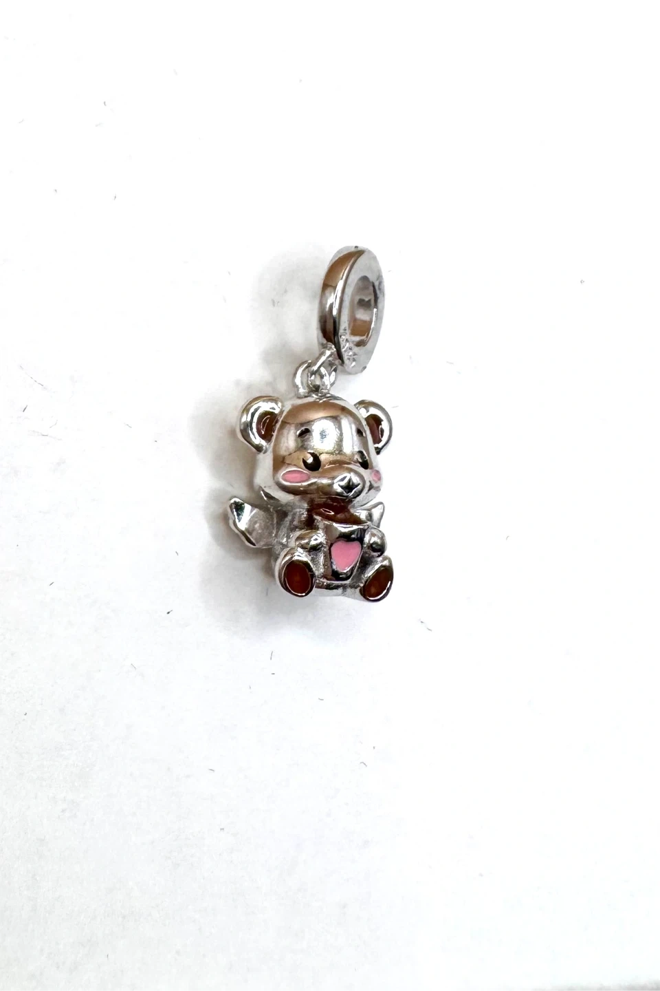 Buy & SellSterling Silver Teddy Bear CharmSterling Silver Teddy Bear Charm$20Cute teddy bear charm with pink accents. It's made of sterling silver and stamped 925. This charm is perfect for bracelets and necklaces!ConditionNewBrandUnbrandedWHERE TO MEETOakvilleView MapSELLERverifiedAndreaRiver Oaks690 reviews0 chats·0 favorites·1 viewsSEND CHAT TO SELLERHi Andrea! I’m interested in your listing.Hi Andrea! I’m interested in your listing.Get the Karrot app to chatSign In to chat