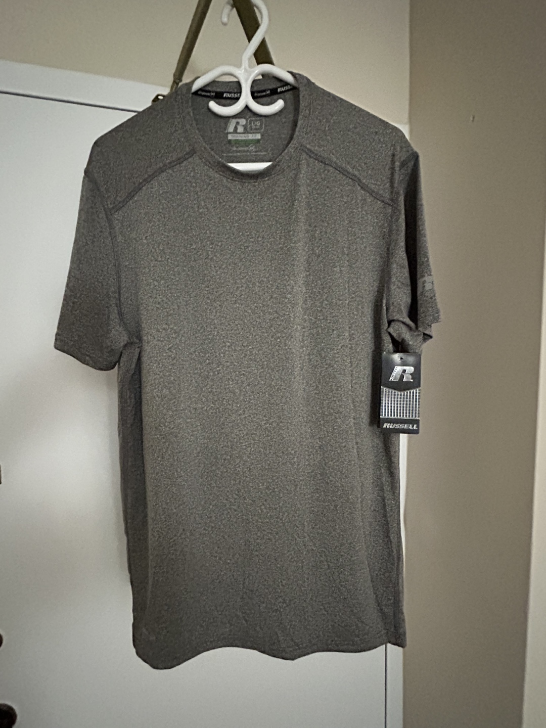 Selling two t-shirts in great condition! One is a Joe Fresh short-sleeved tee, and the other is a Russell Athletic short-sleeved tee. Both are size large and perfect for casual wear or working out! The material is soft and breathable, making them super comfy for everyday use. Brand new with tags attached.
