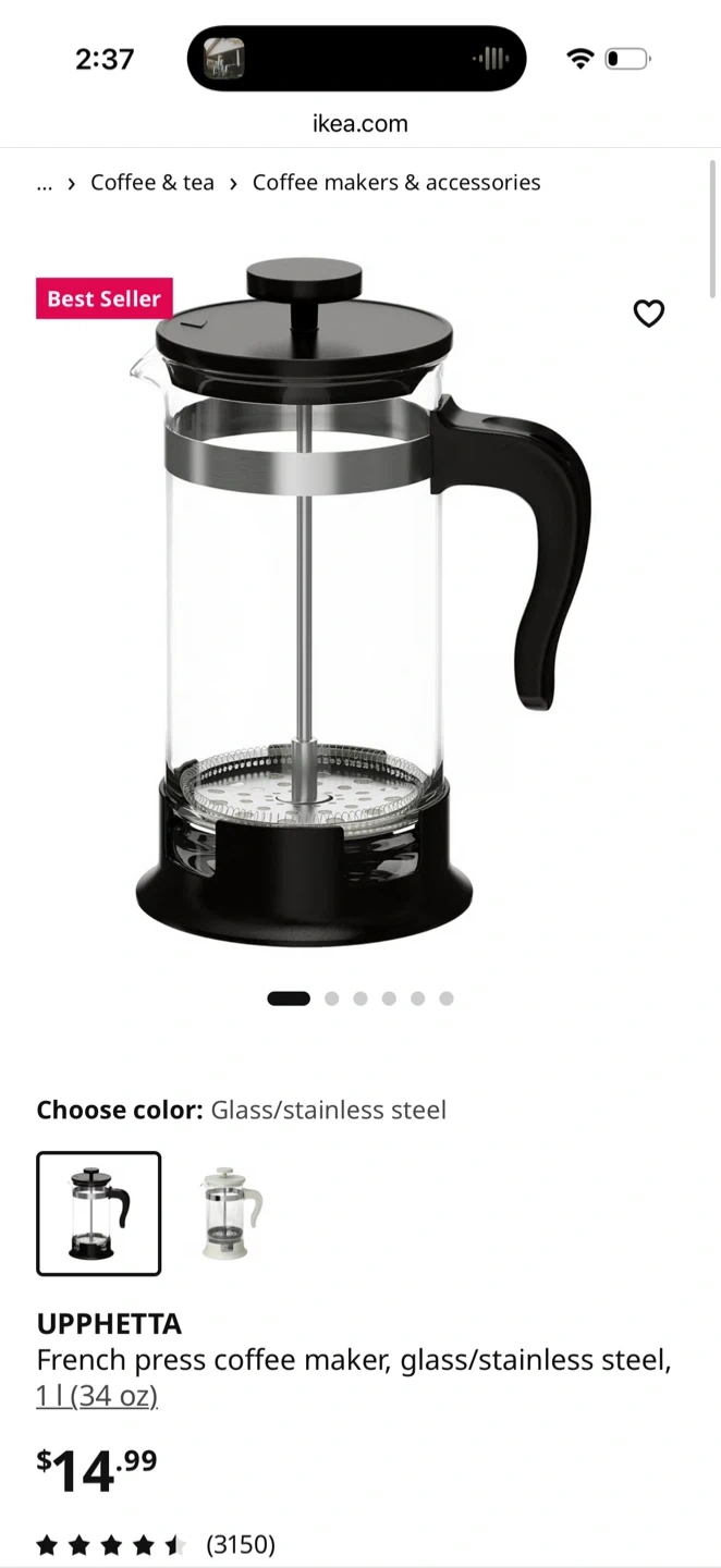Buy & SellIKEA French PressIKEA French Press$10Glass vessel Clean, great conditionConditionLike newWHERE TO MEET36 Brentcliffe RdView MapSELLERverifiedEricaLeaside20413 reviews0 chats·0 favorites·3 viewsSEND CHAT TO SELLERHi Erica! I’m interested in your listing.Hi Erica! I’m interested in your listing.Get the Karrot app to chatSign In to chat