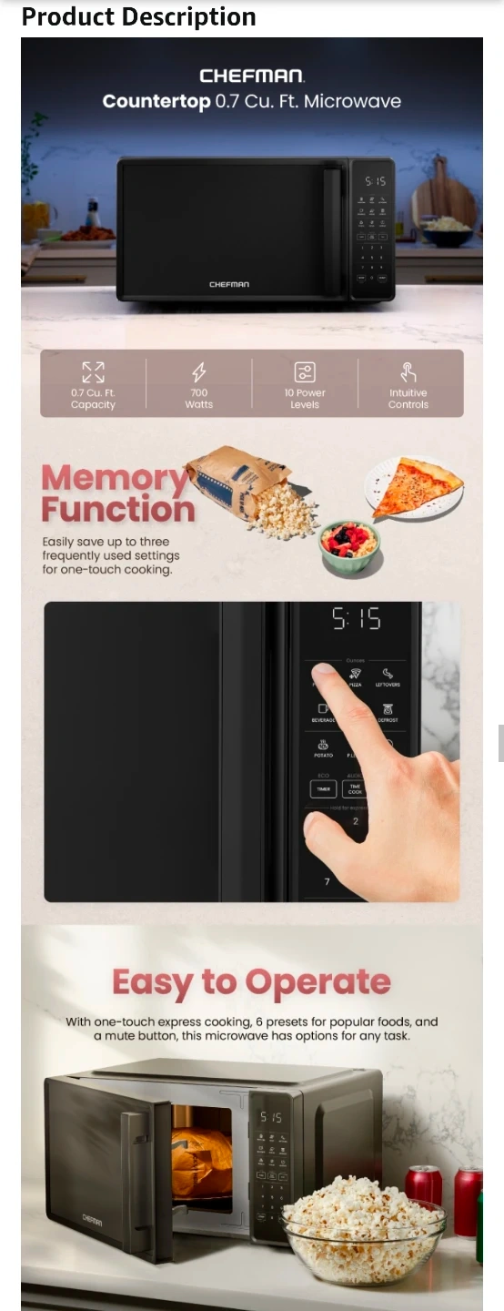 π½οΈ Chefman 0.7 Cu. Ft. Countertop Microwave Oven