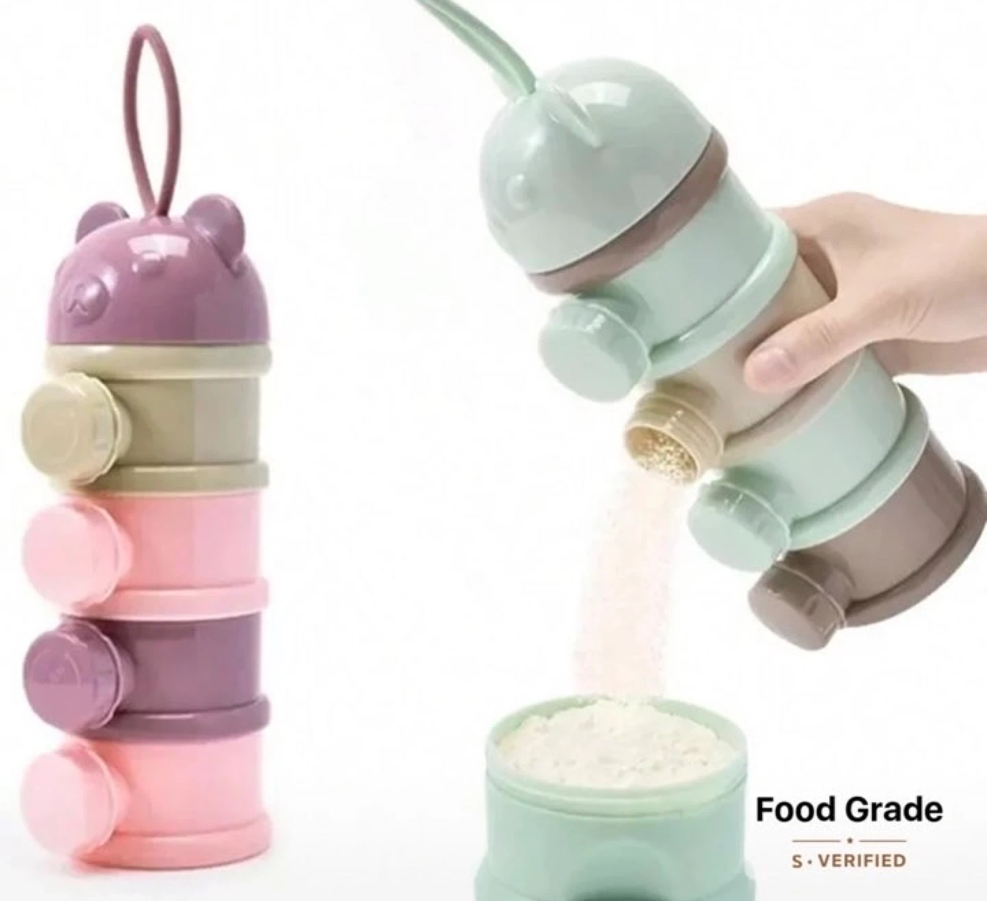 This is a handy milk powder dispenser shaped like a cute bear! It's designed with multiple layers to store pre-measured portions of formula, making feeding time on the go so much easier. It's food grade and very convenient for travel or outings with your little one