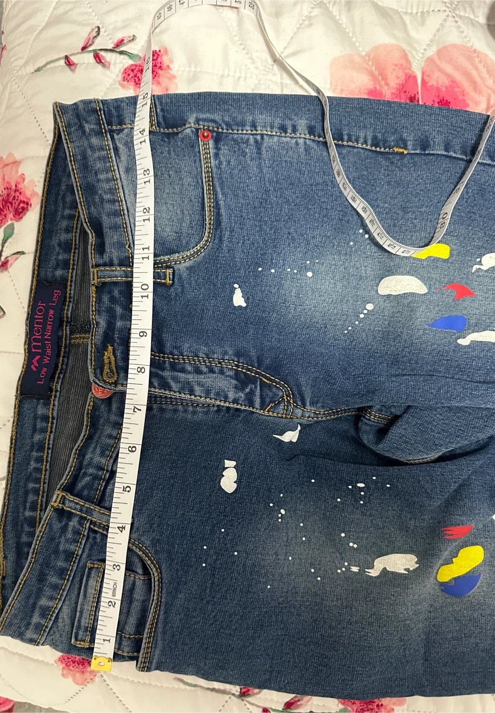 Cool jeans with a unique paint splatter design. These Mentor jeans have a low waist and narrow leg style. Waist measures about 31-32 inches, inseam is around 28-29 inches. Fun for a casual look. Price is negotiable!!