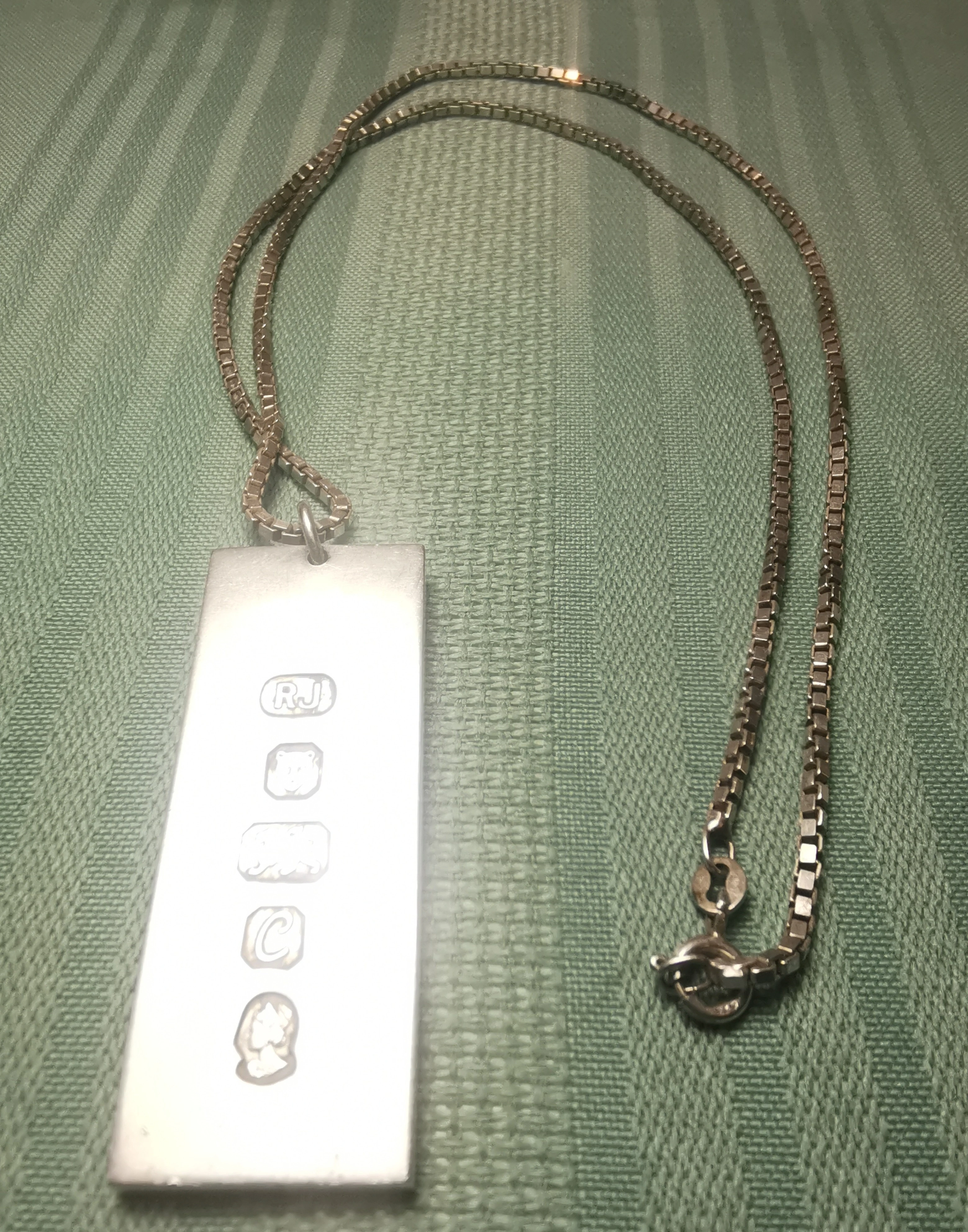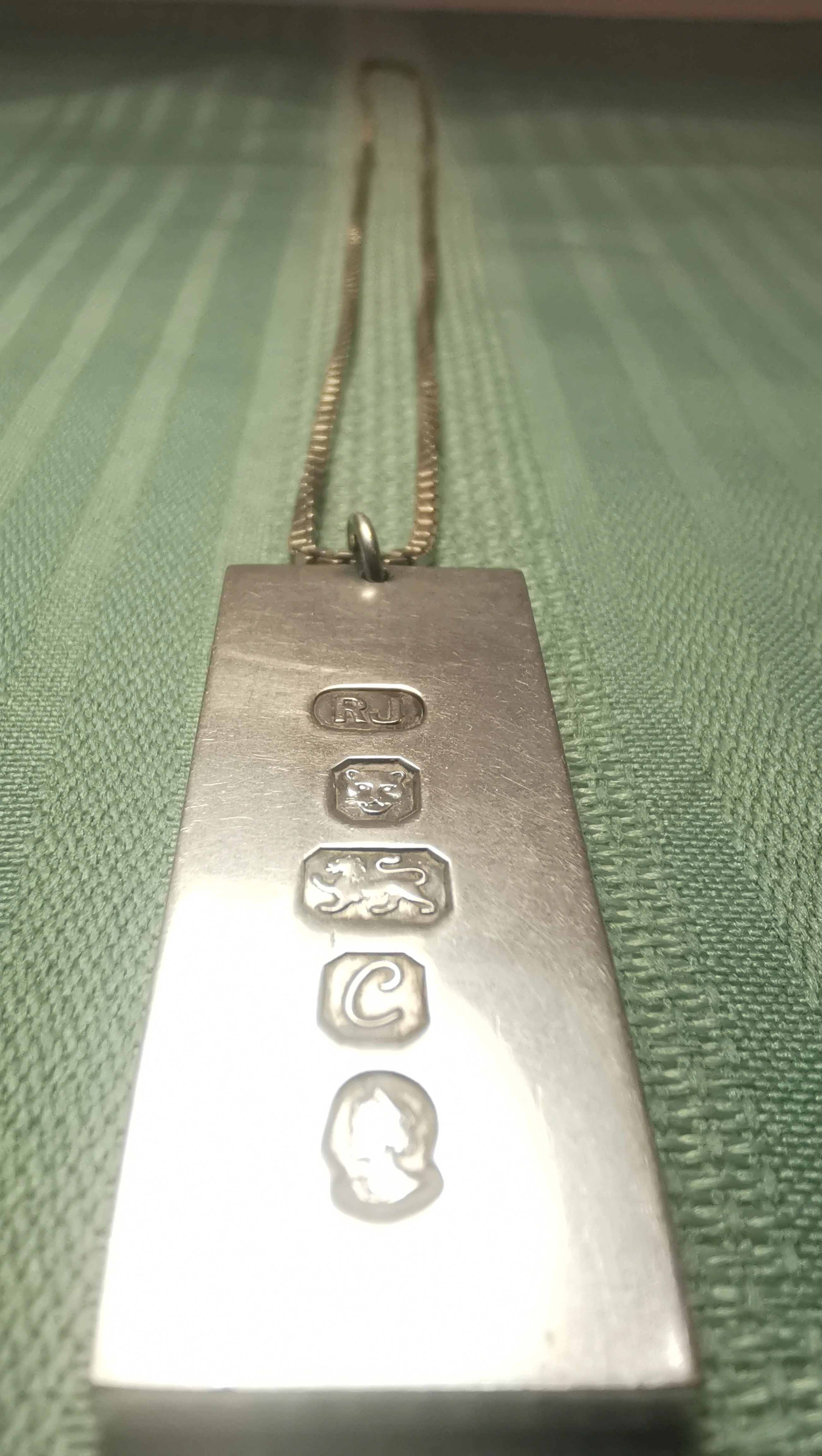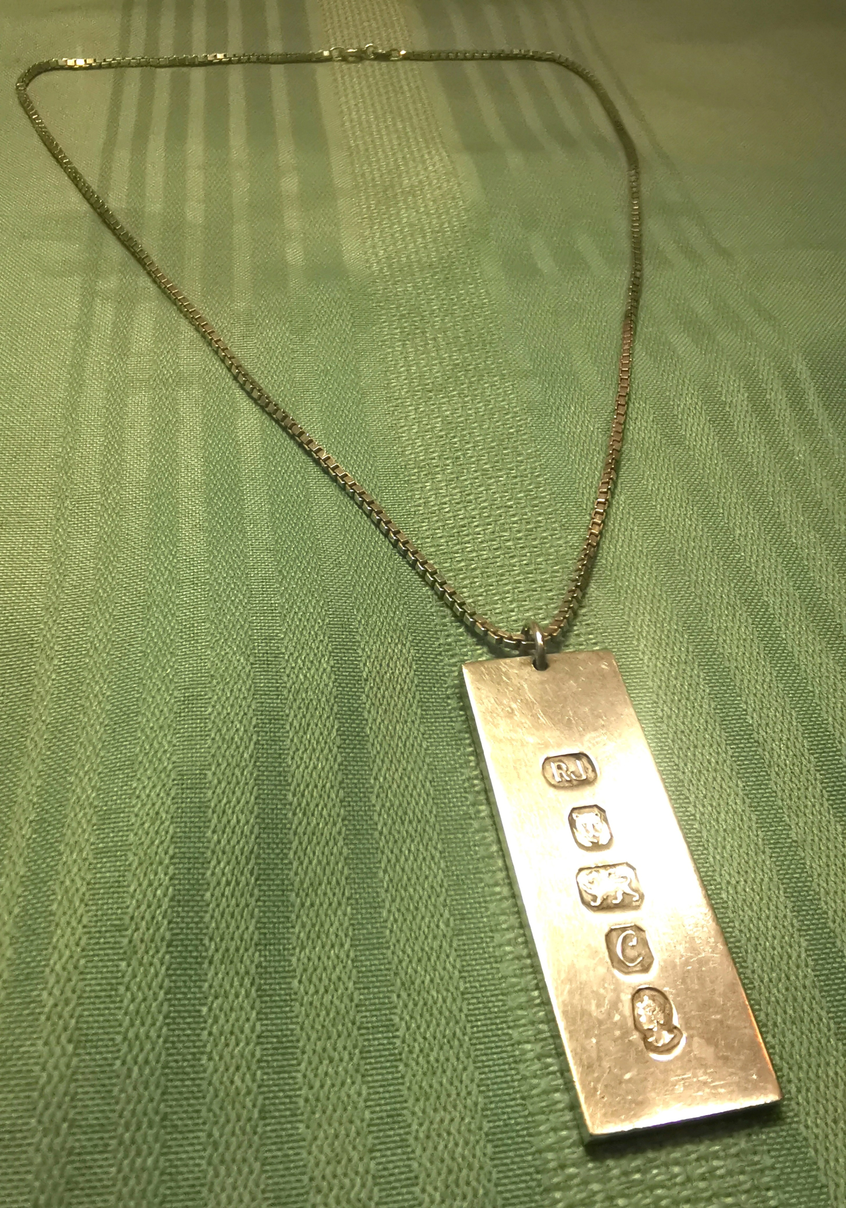 1977 Silver Jubilee Ingot Necklace 38g Sterling Silver London