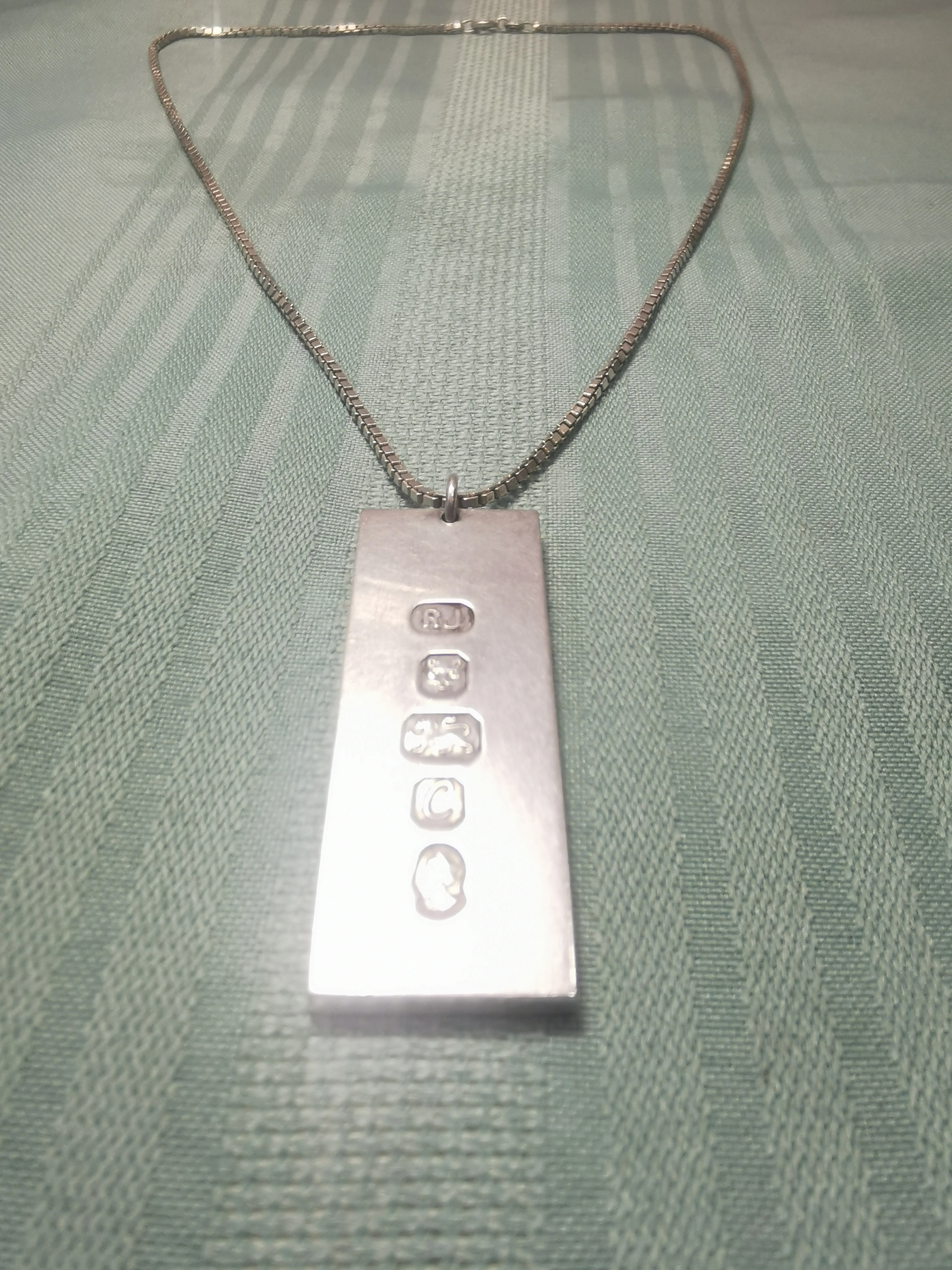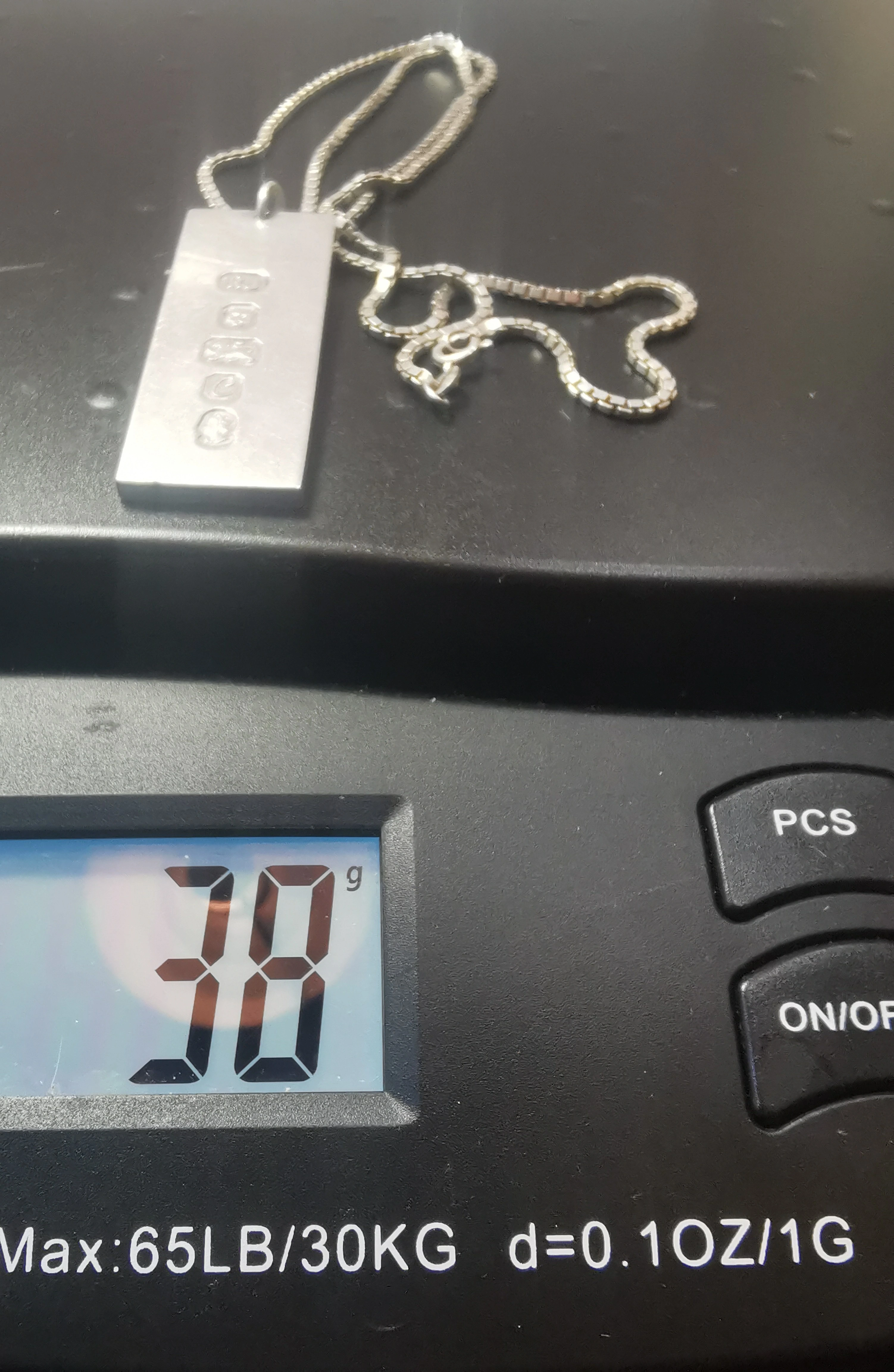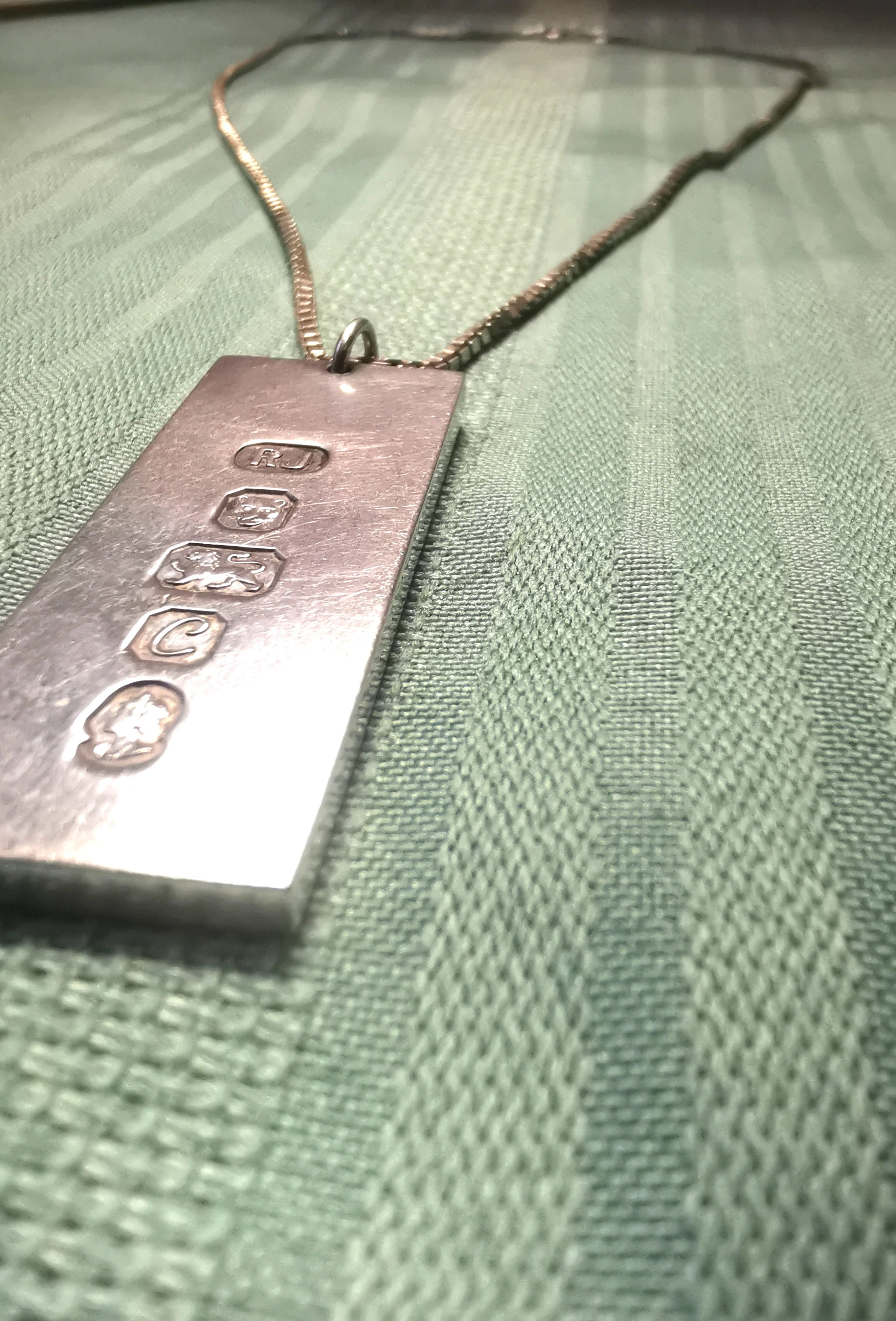 1977 Silver Jubilee Ingot Necklace 38g Sterling Silver London
