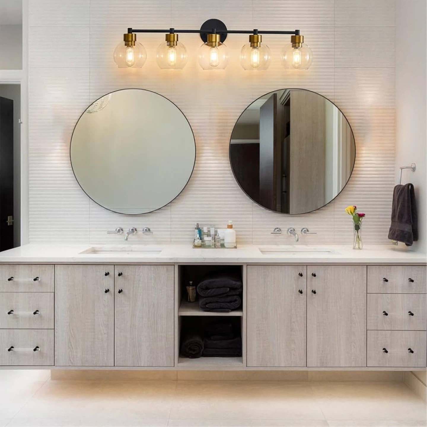 5 Light - Bathroom Vanity Light with Clear Globe Glass Shades