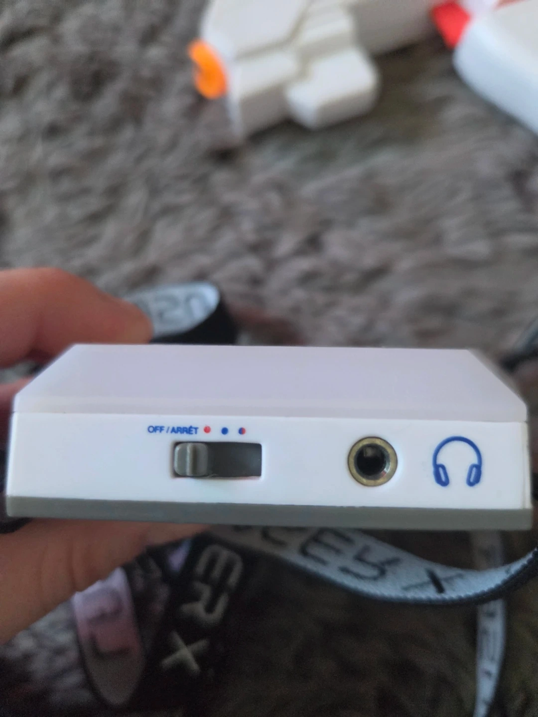 Your chestplate is attached to the Lazer gun, turn it on and try to get the other player out by zapping them on their chest plate. Both have volume control, and an option for wired headphones for silent play.