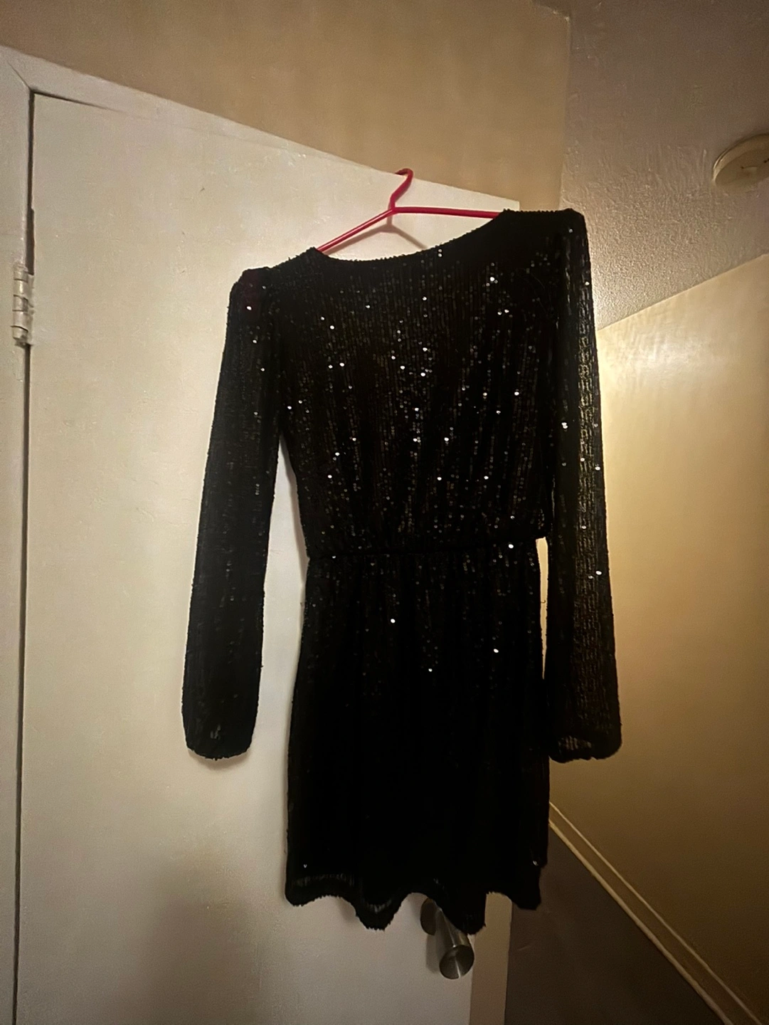 Sparkly black mini dress. Long sleeves. Great for a night out. Paid $99 worn once. Freshly hand washed in organic soap.