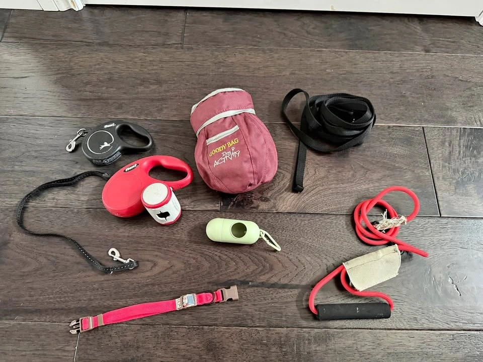 Used dog accessories including: Flexi Leashes, Training Leash, Goody Bag for Dog Activity, Poop Bag Dispenser, Dog Collar. Cash only. Located in East London ON, near Hamilton Rd and Commissioners Rd.