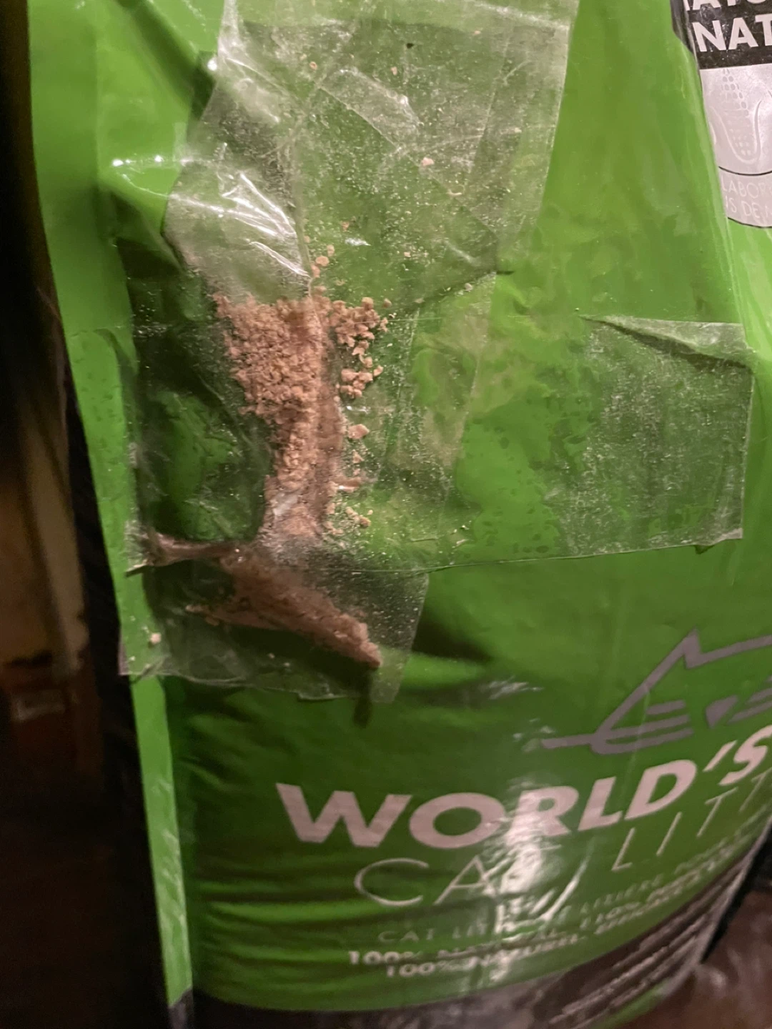 There’s a rip in the bag, covered up with tape.