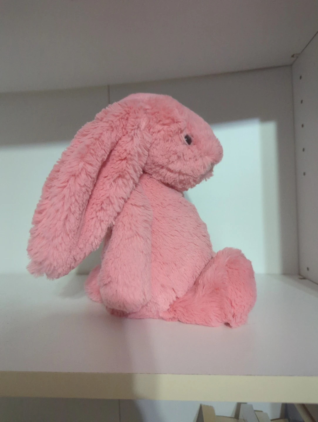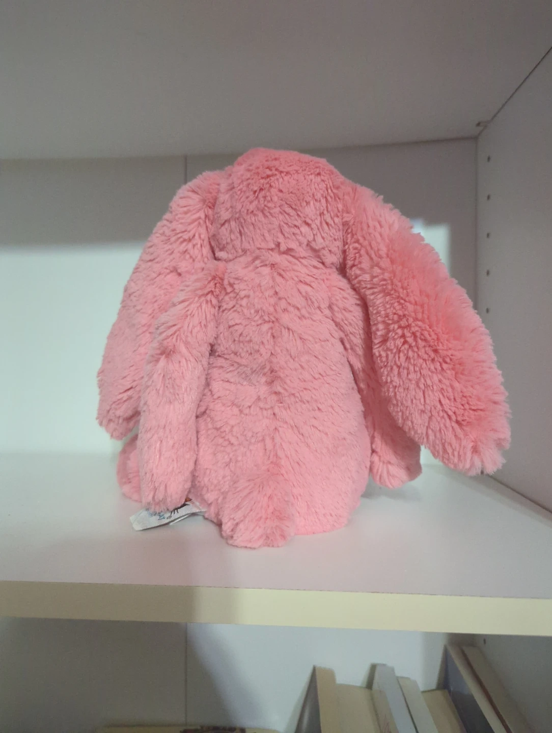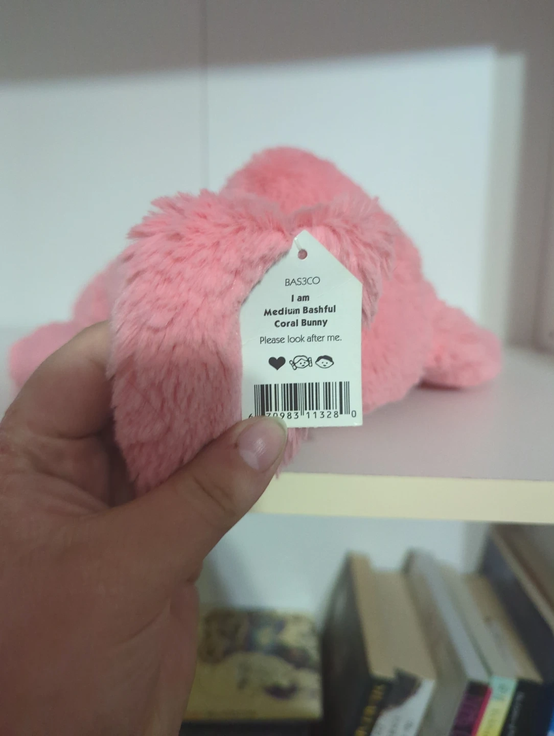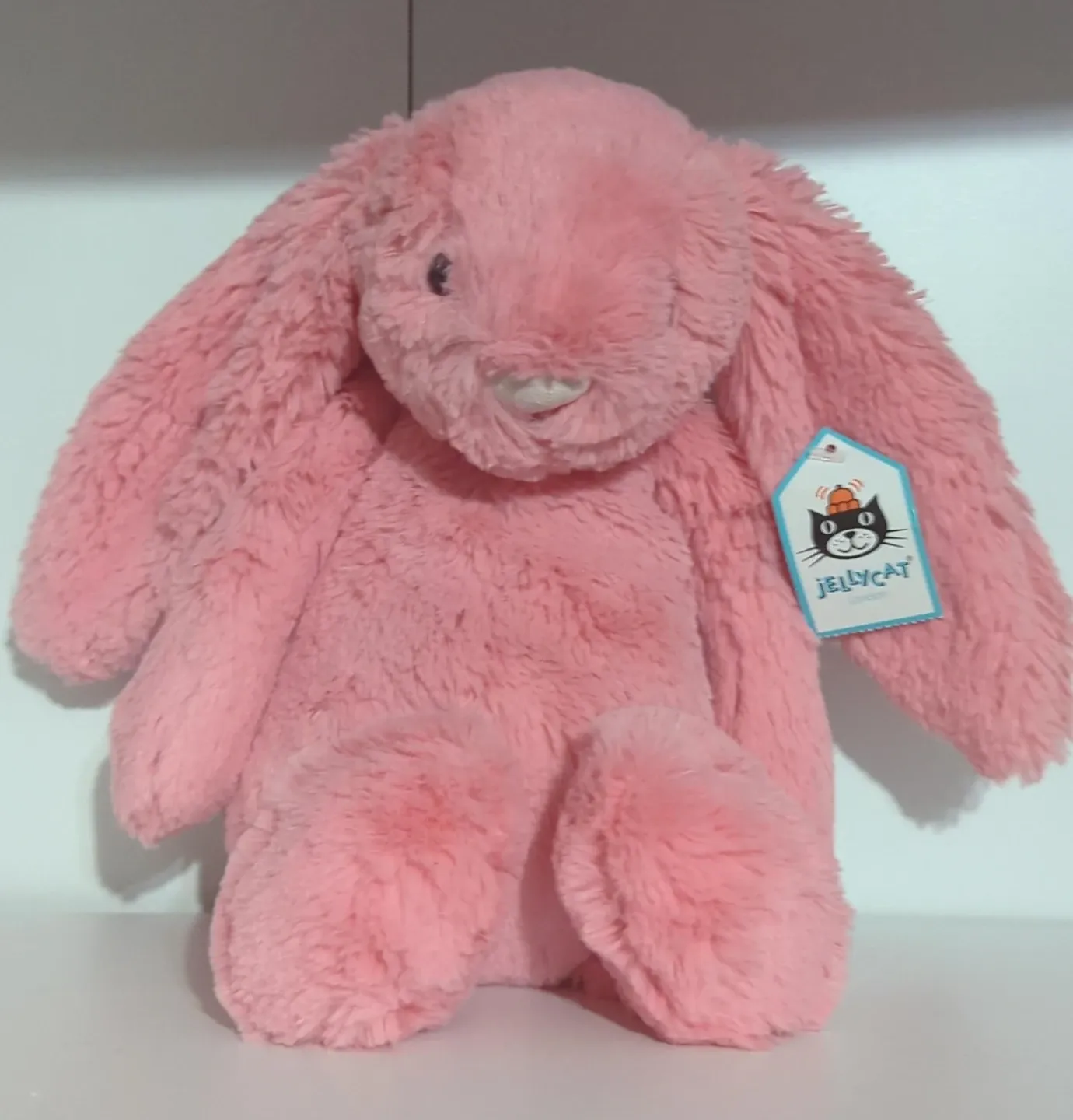 This is a medium-sized Jellycat Bashful bunny coral pink, brand new with tag