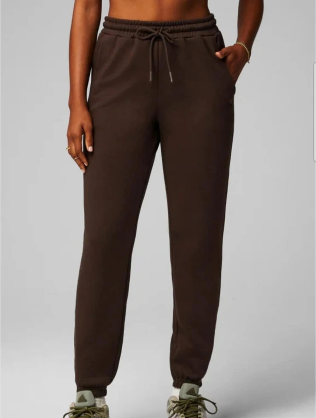 Features: Mid-rise, inseam pockets, elastic waist and cuffs