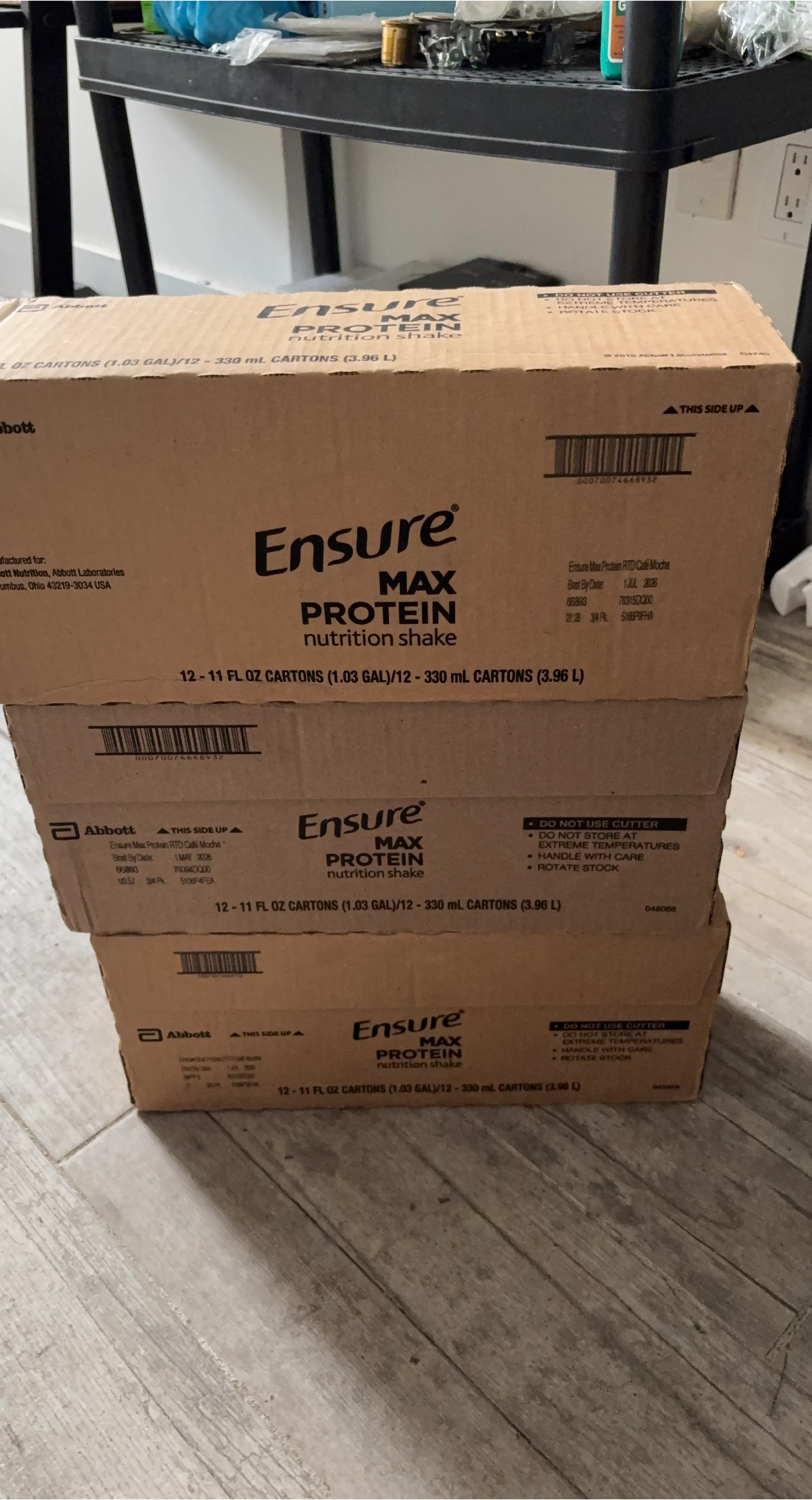 Ensure Max Protein nutrition shake in Cafe Mocha flavor.