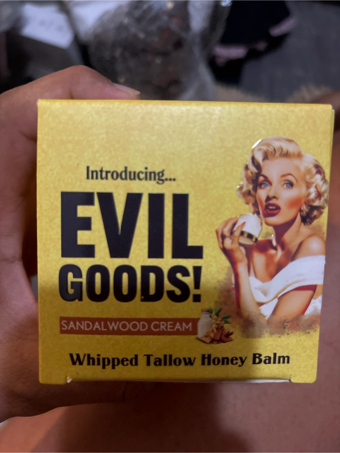 Selling a jar of Evil Goods Sandalwood Cream Whipped Tallow Honey Balm. It's a cream that is made with zero toxins