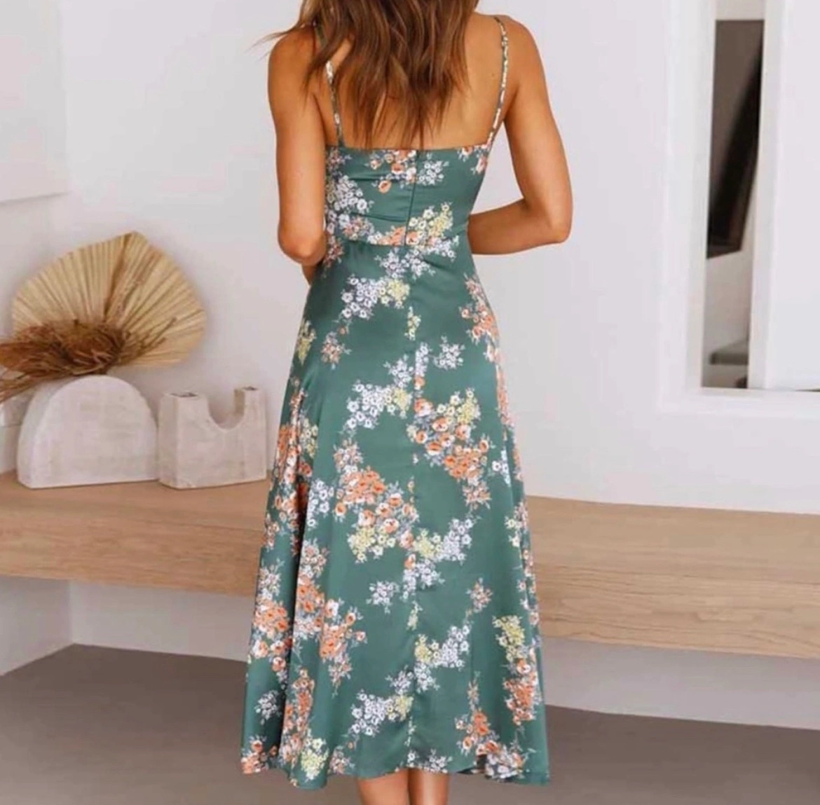 Befoka Womens Summer Backless Floral Print Dress, Green, Sz L